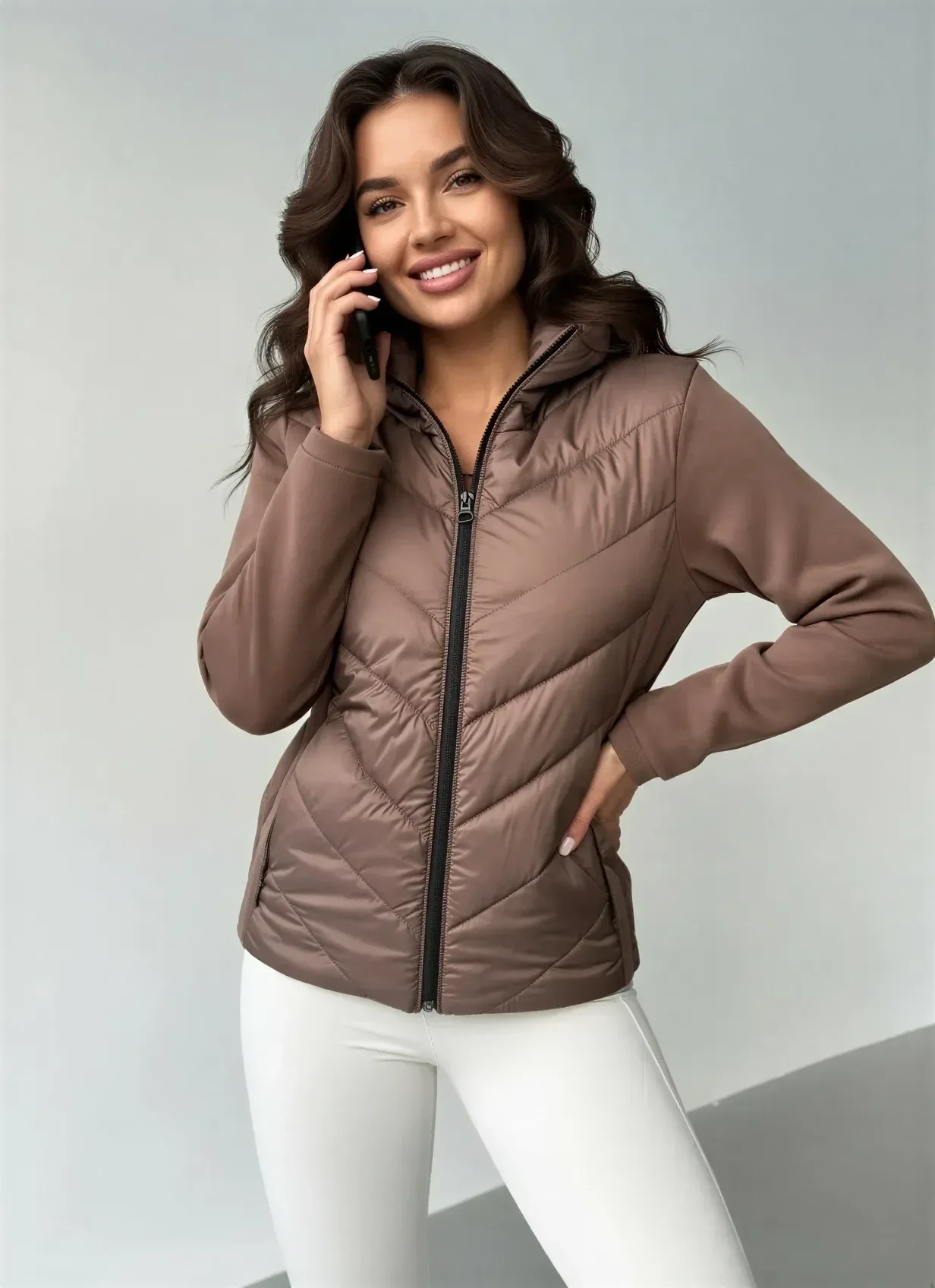 • Kahve ZR Scuba Garnili Kapşonlu Şişme Mont