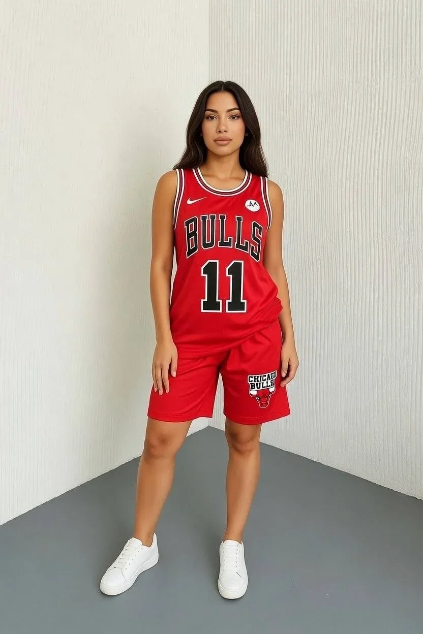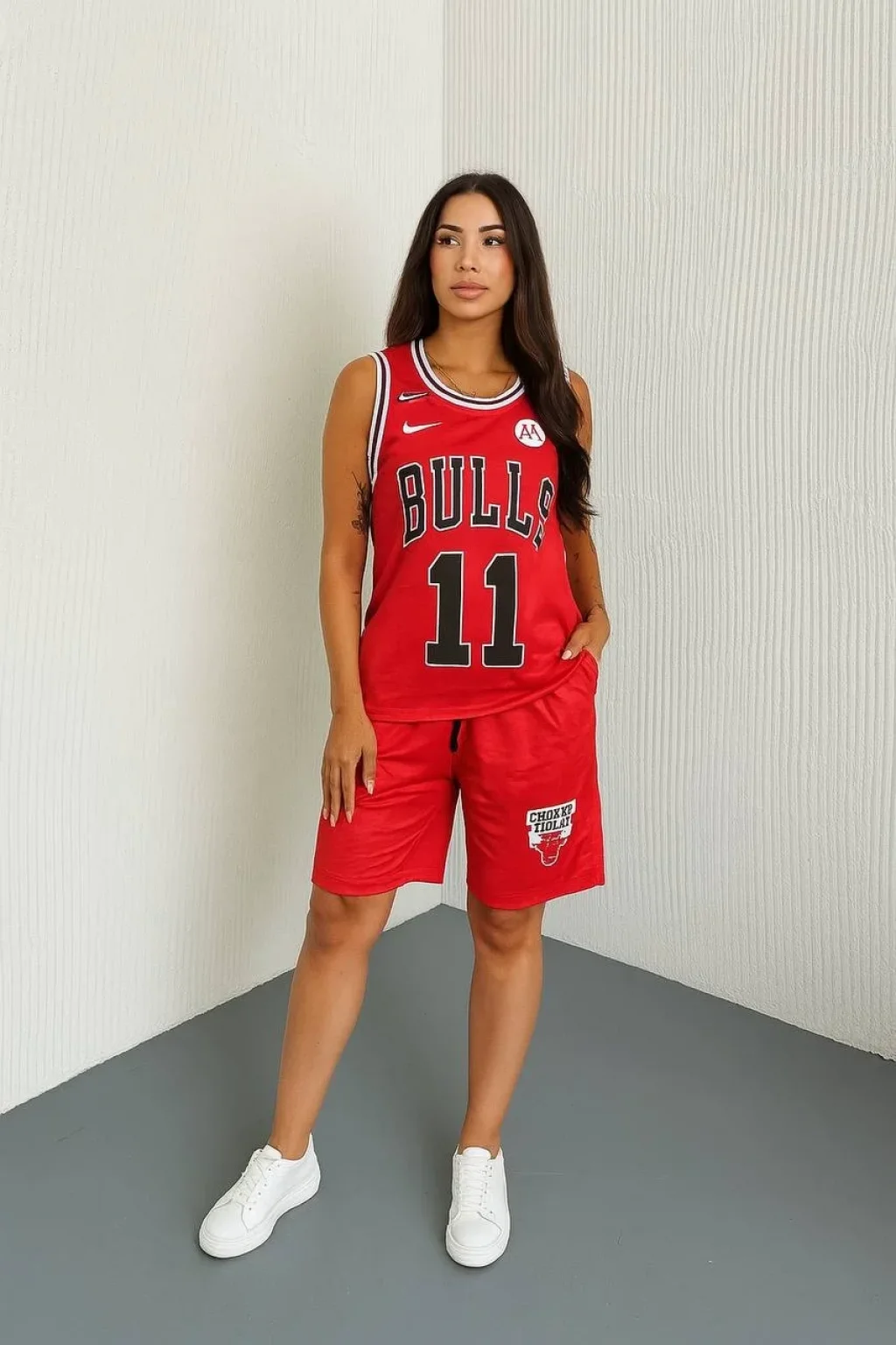 Kırmızı Chicago Bulls 11 Oversize Unisex Şortlu Takım