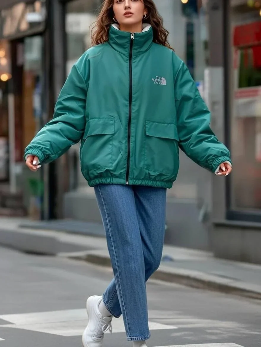 • Koyu Yeşil Çift Taraflı Giyilebilir Kürklü Mont