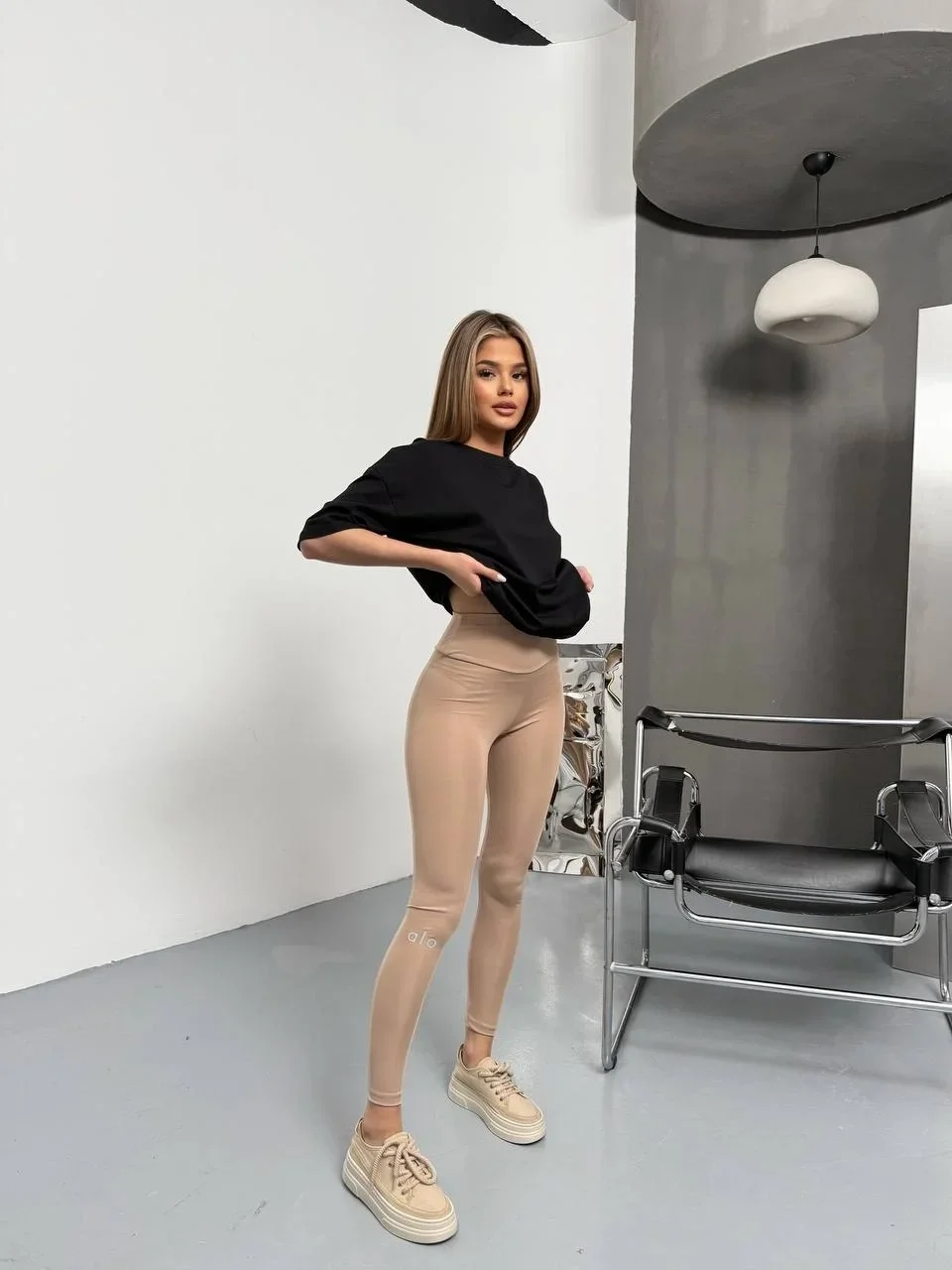 • Krem Alo Bilek Baskılı Sıkılaştırıcı Yüksek Bel Tayt