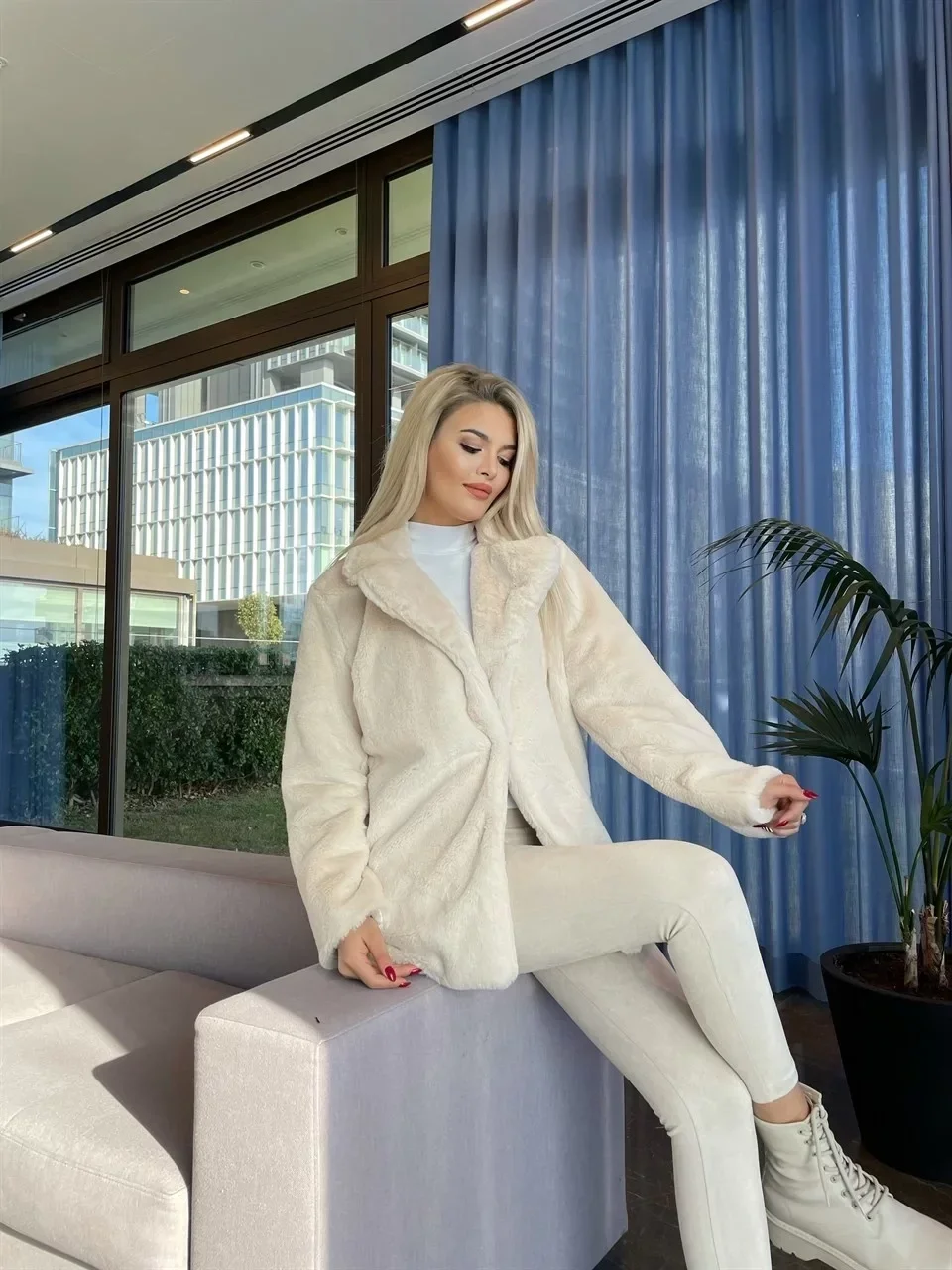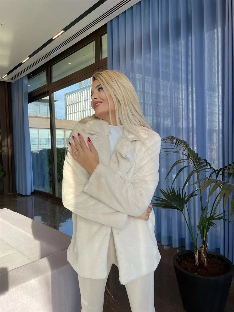 • Krem İçi Astarlı Rabbit Peluş Kaban