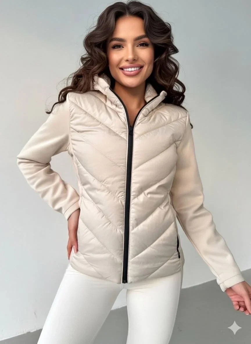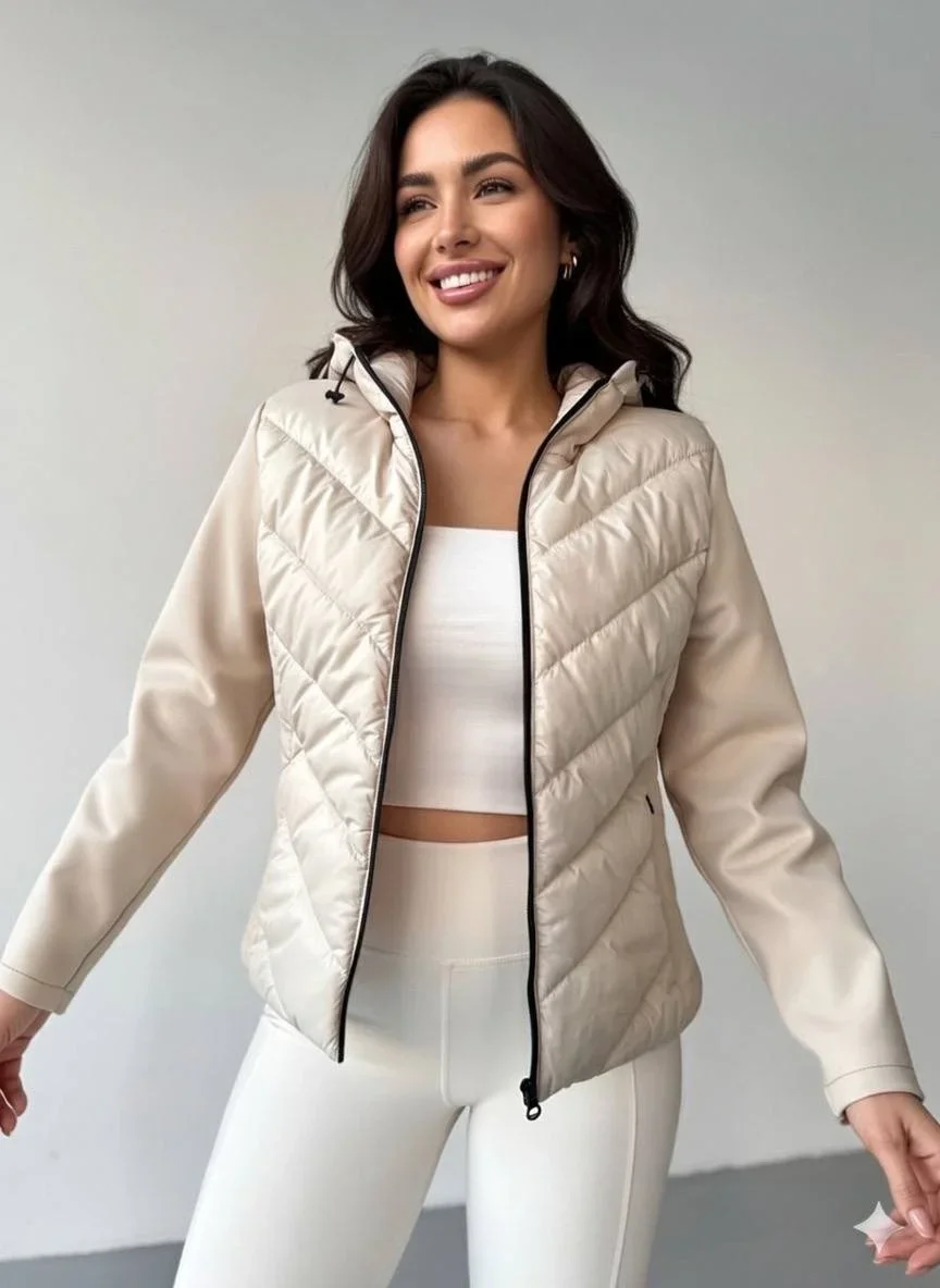 • Krem ZR Scuba Garnili Kapşonlu Şişme Mont