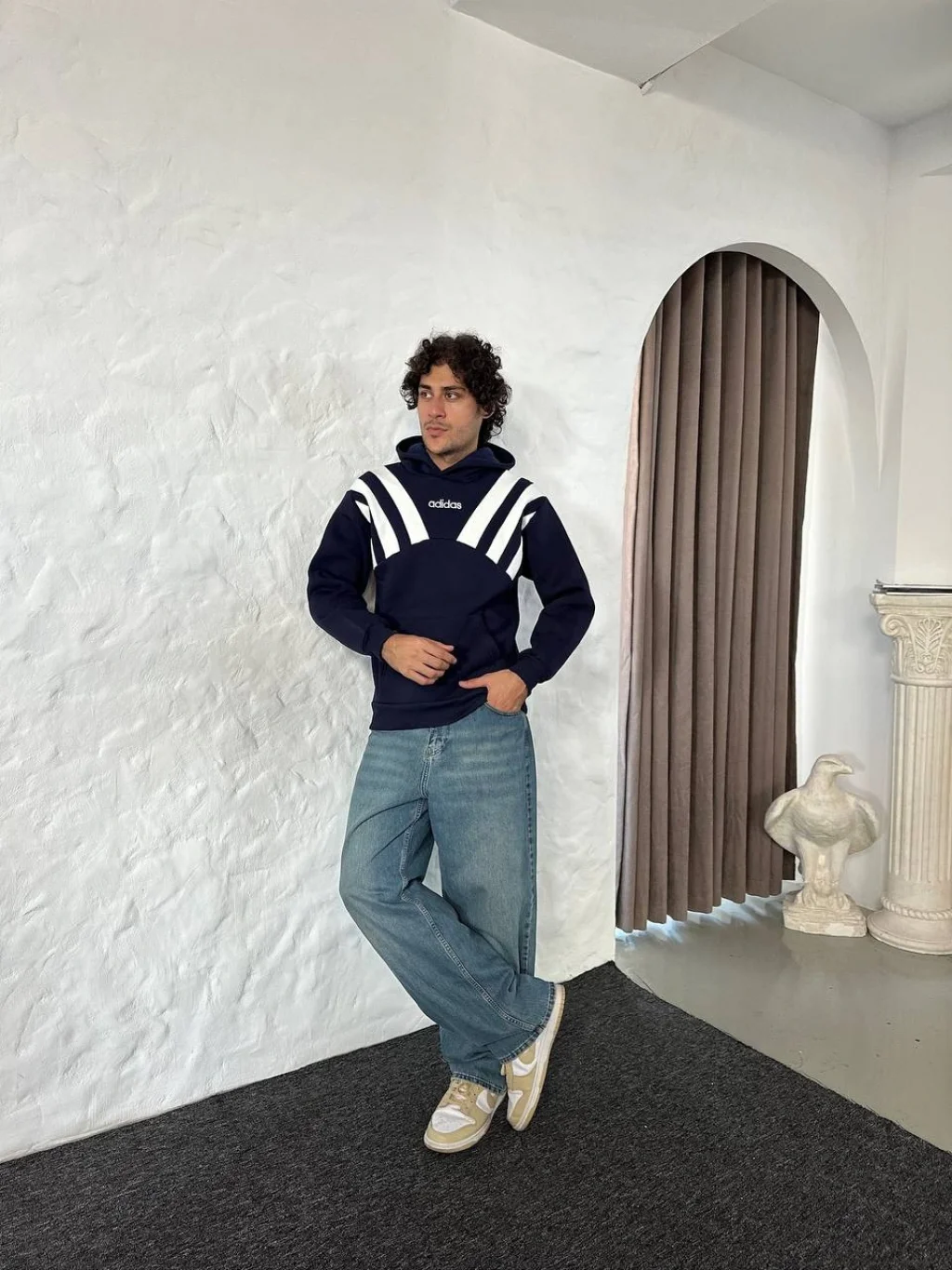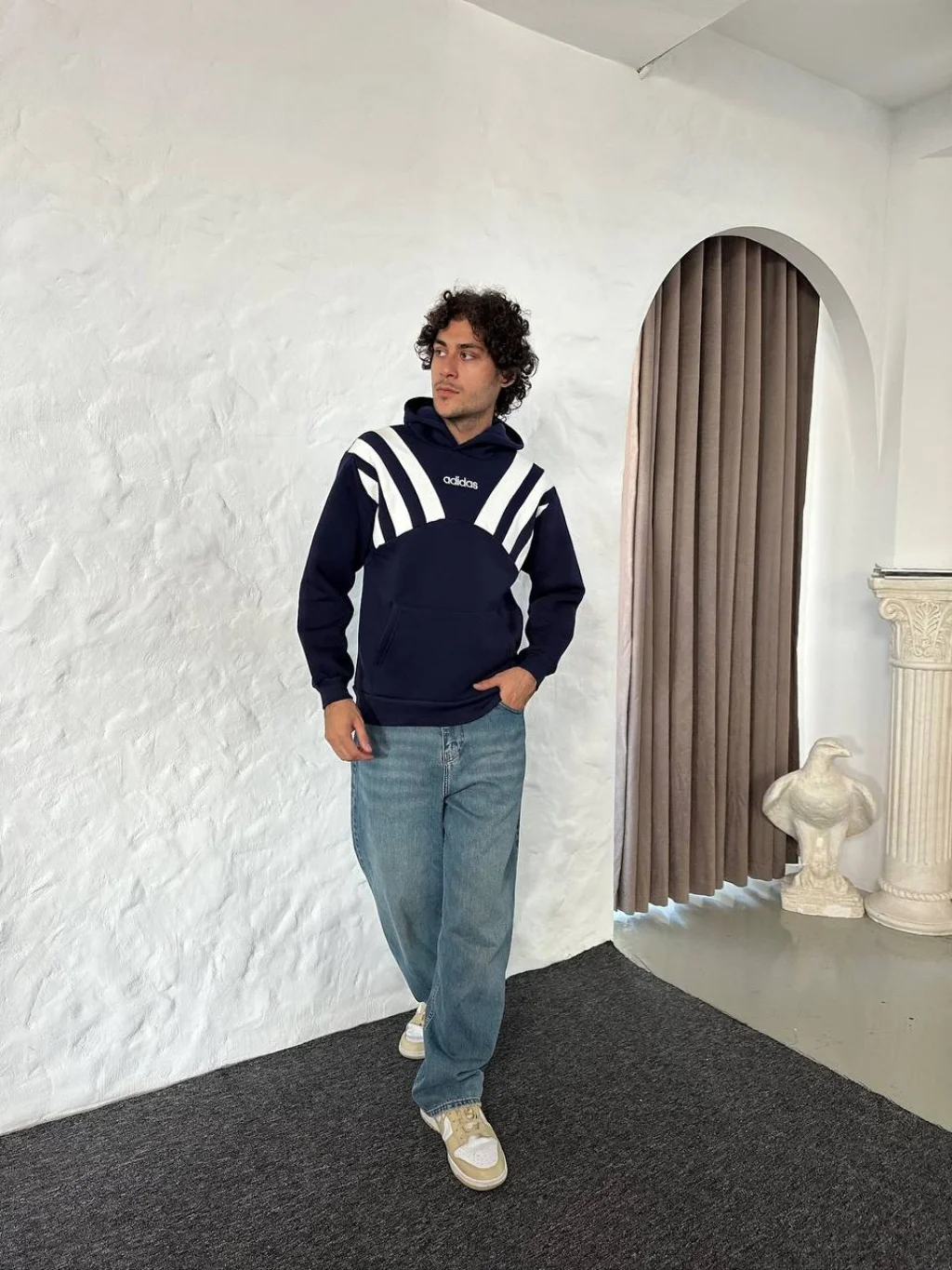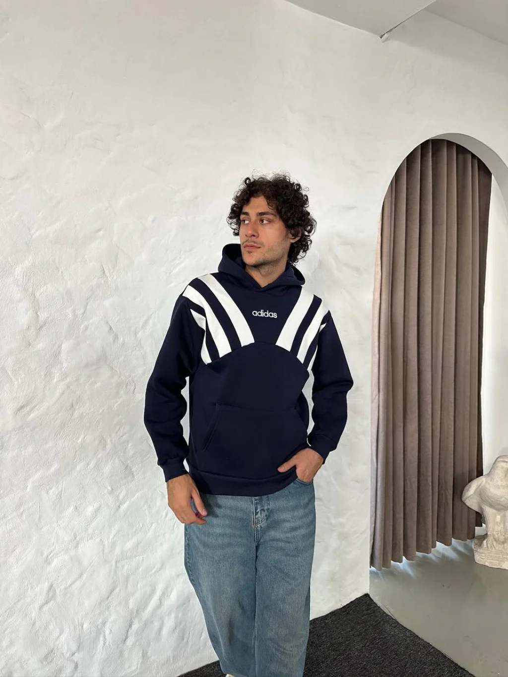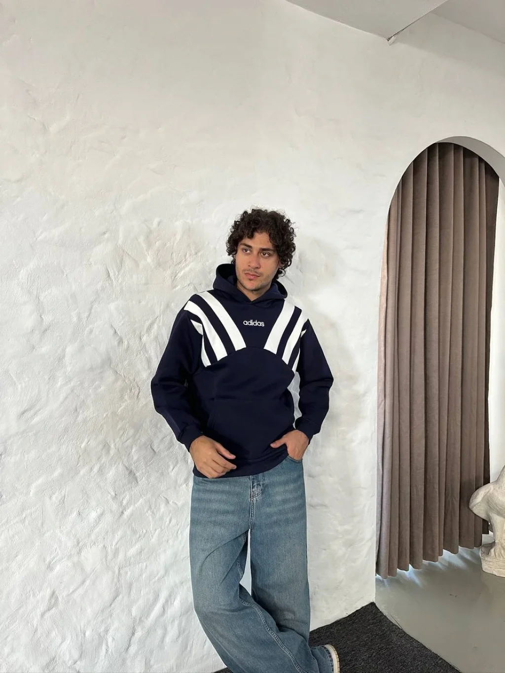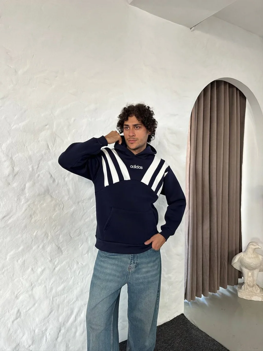 Lacivert ADD Omuz Şeritli Kapşonlu Unisex Oversize Sweat
