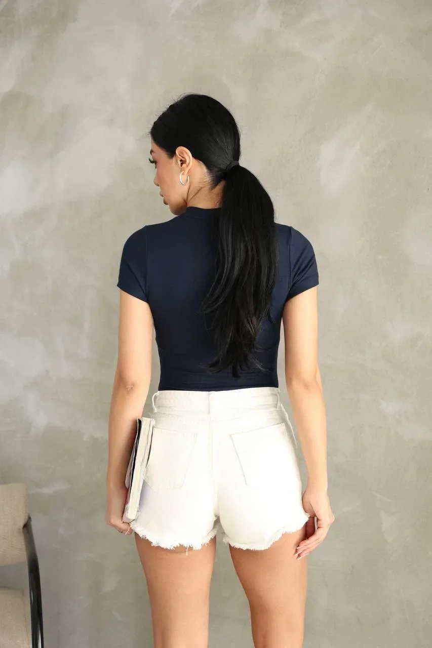 • Lacivert Alo Bisiklet Yaka Body Tshirt