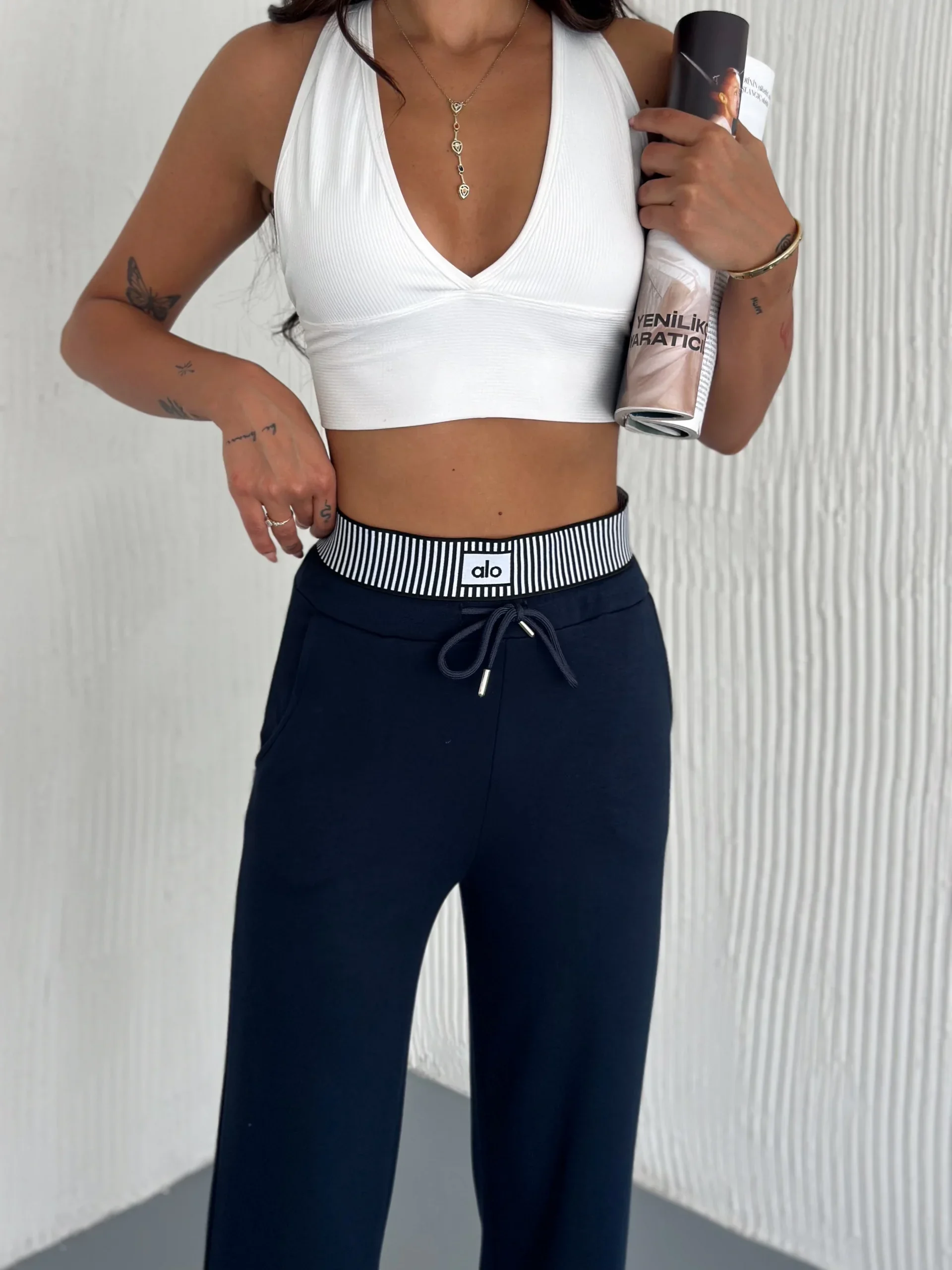 Lacivert Alo Çizgili Ribana Pantolon