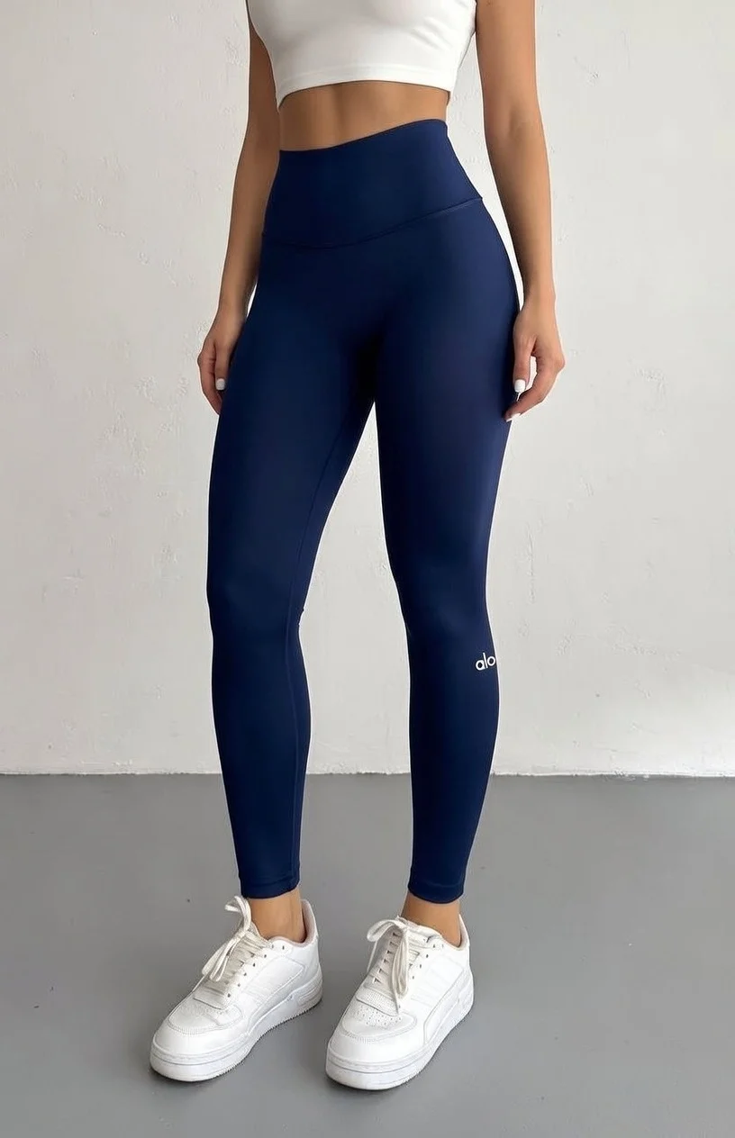 Lacivert Alo Yoga Şardonlu Sıkılaştırıcı Yüksek Bel Tayt