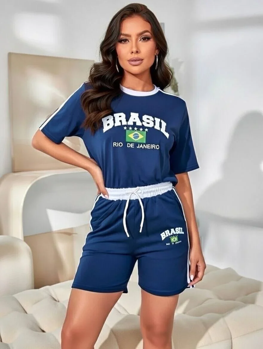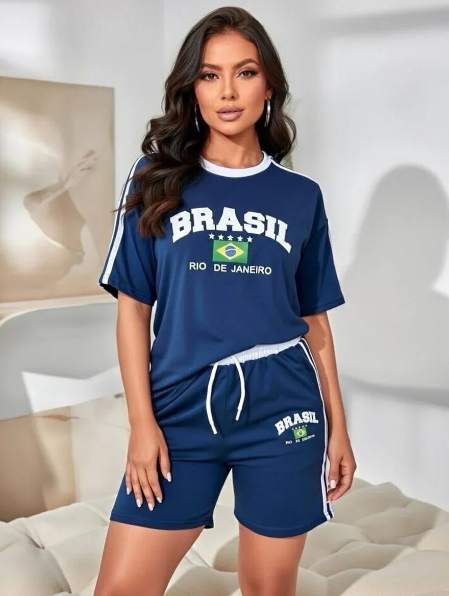 Lacivert Brasil Oversize Unisex Şortlu Takım