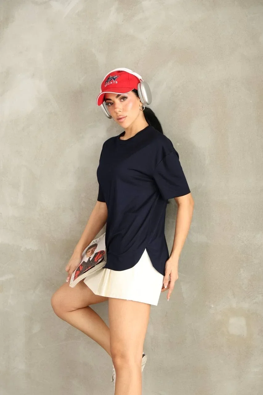 Lacivert Oysho Yırtmaçlı Modal Oversize Tshirt