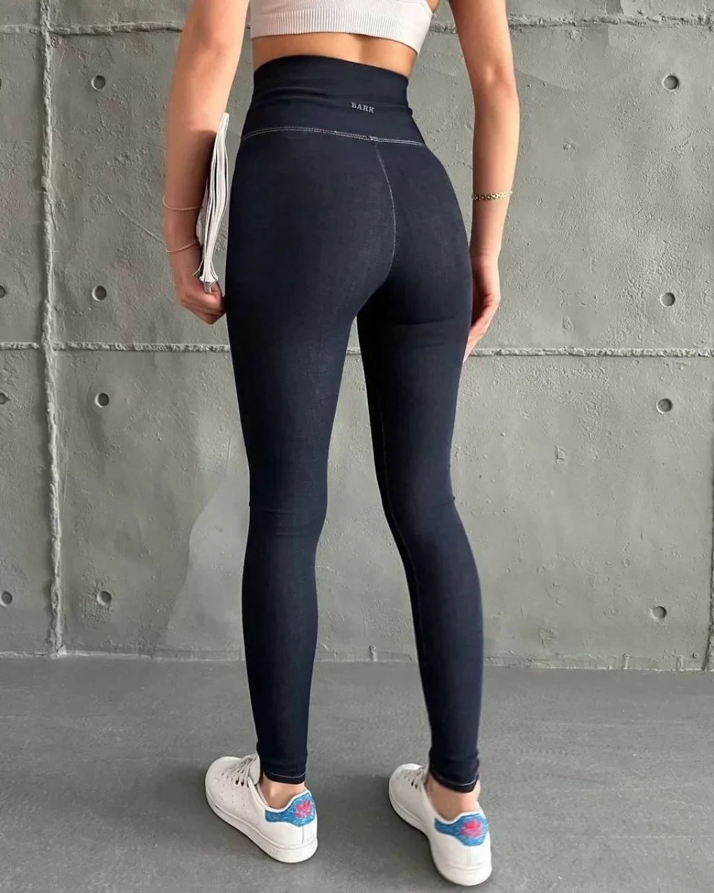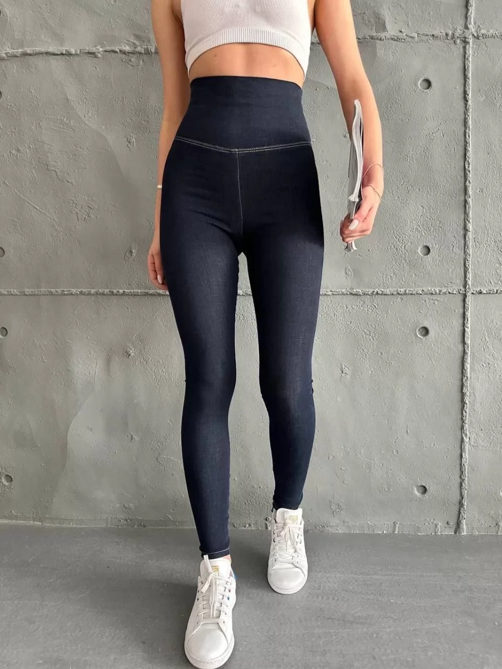 Lacivert Yüksel Bel İnceltici Esnek Likralı Kot Tayt
