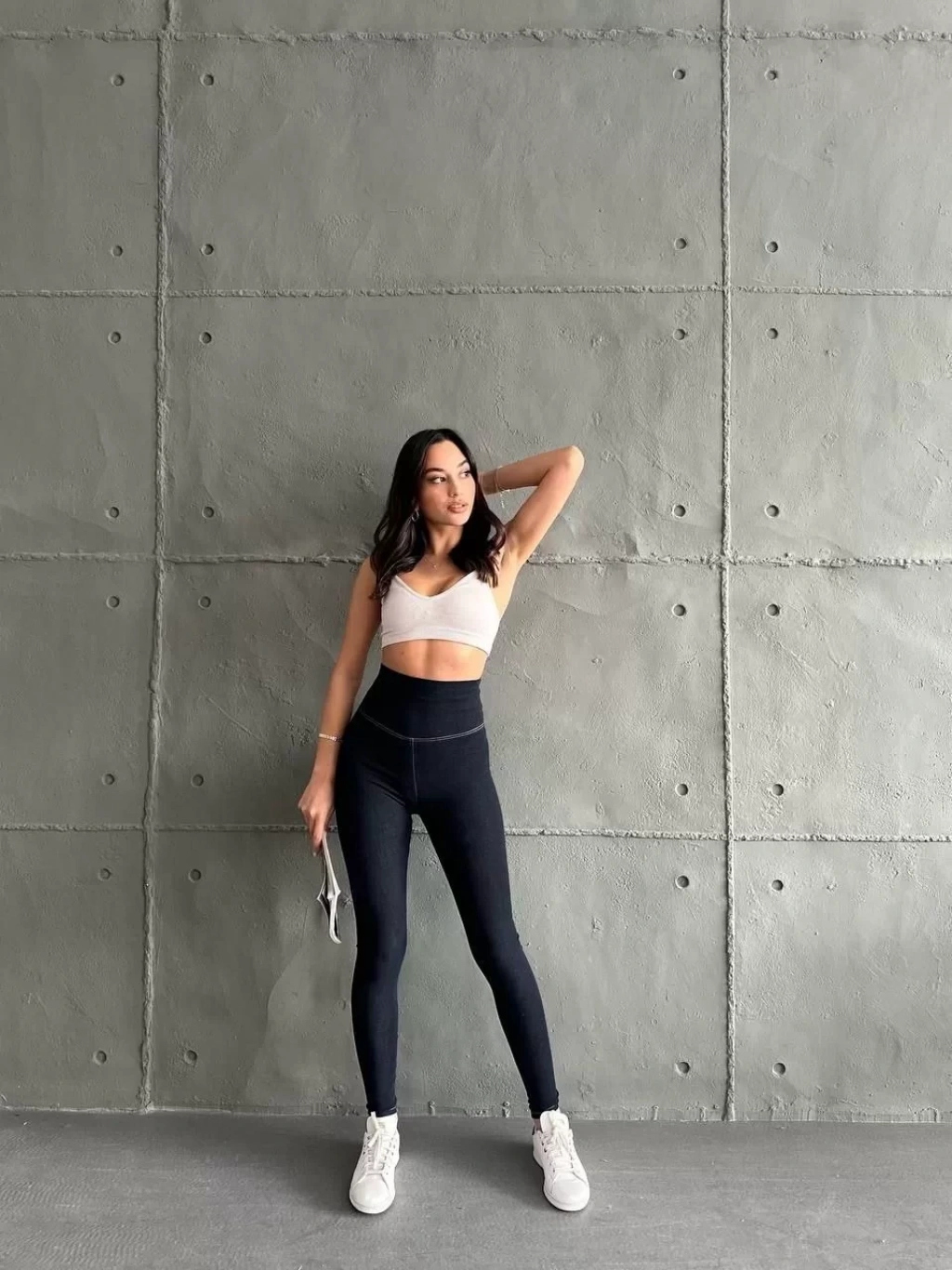 Siyah Yüksel Bel İnceltici Esnek Likralı Kot Tayt