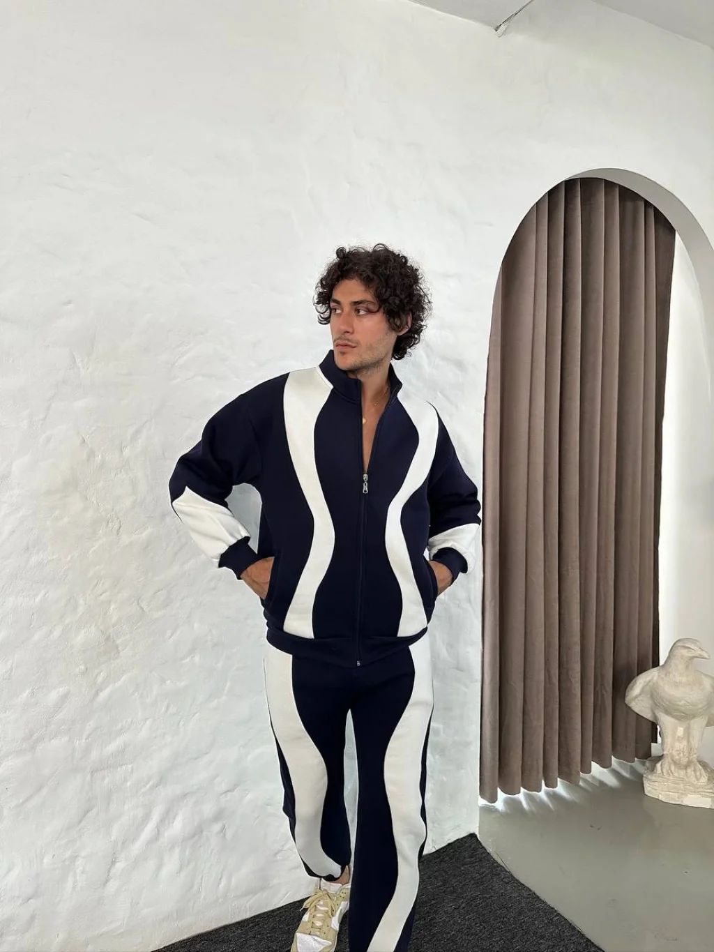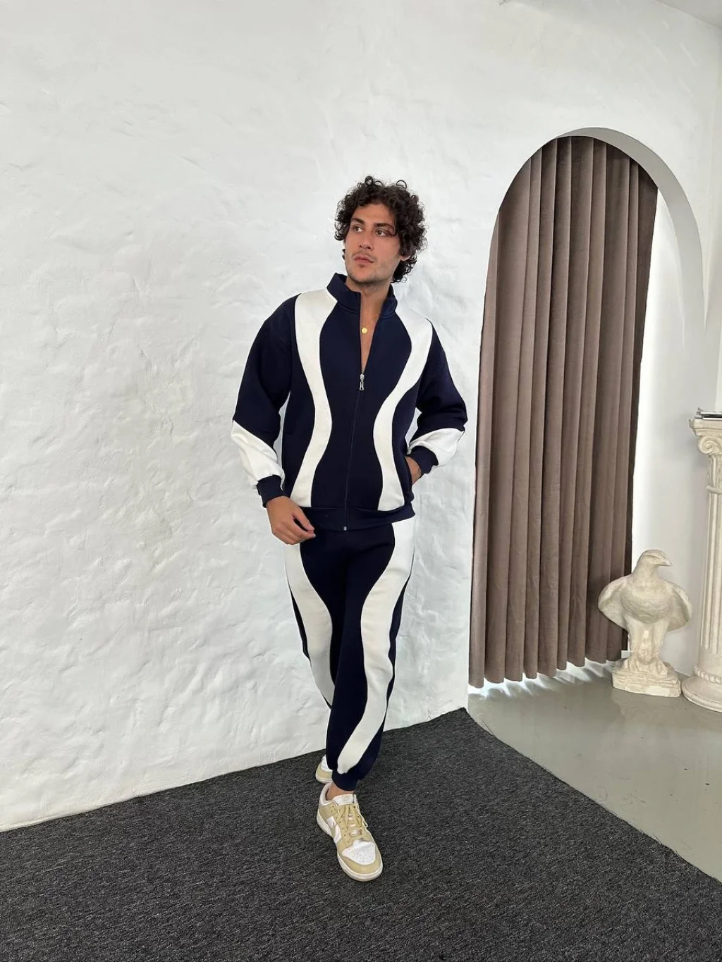 Lacivert Zig Zag Oversize Eşofman Takımı