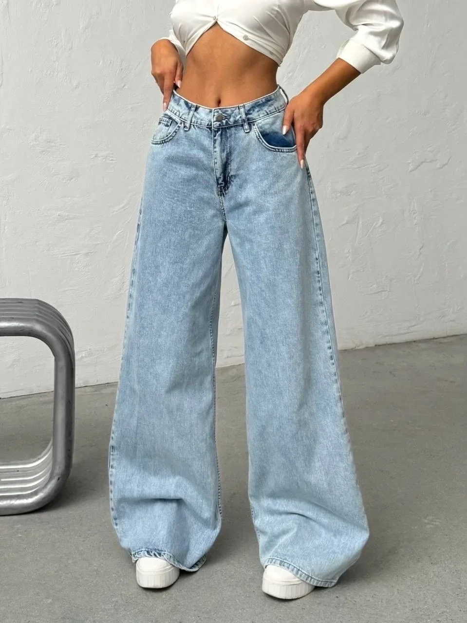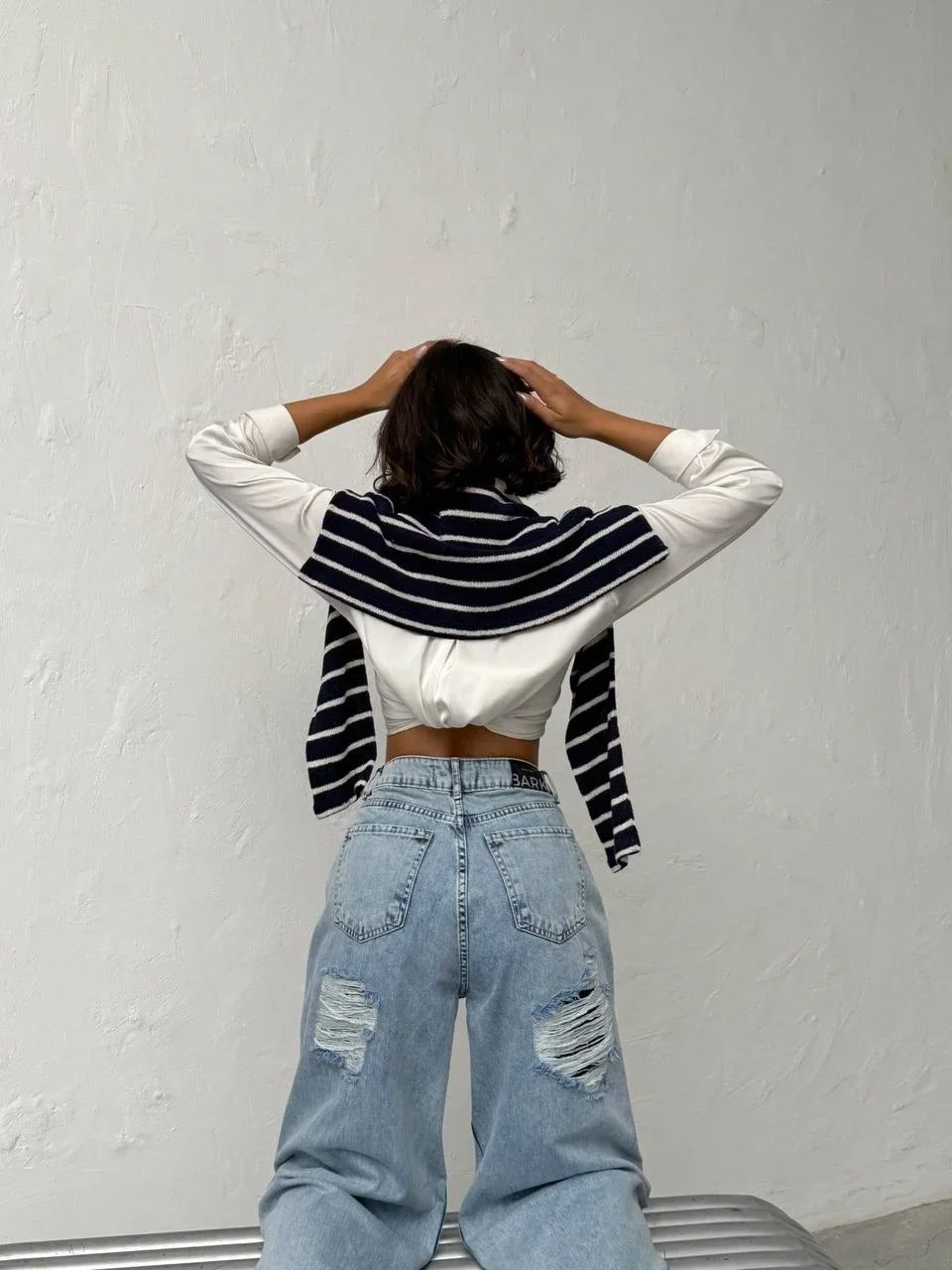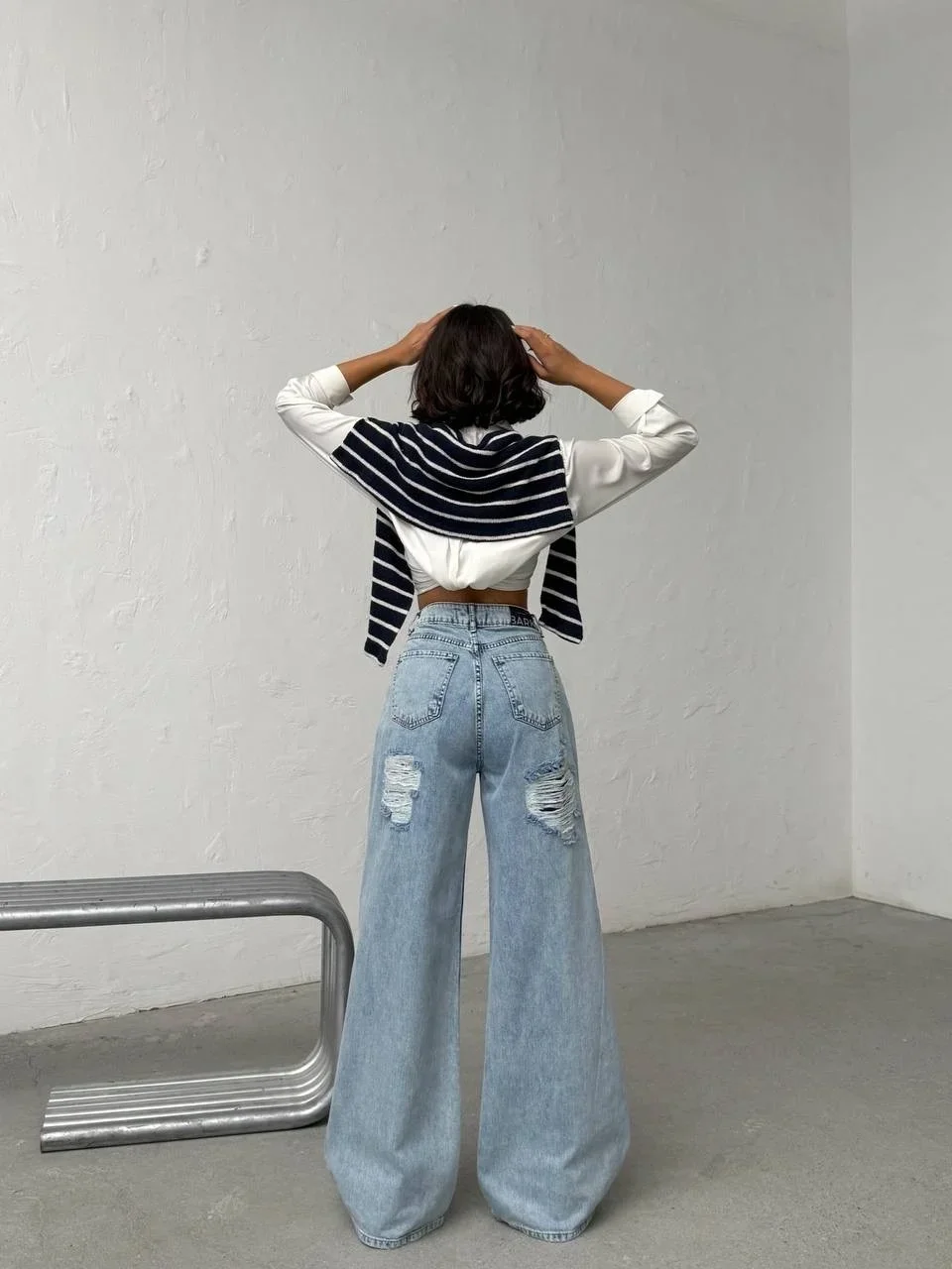 Mavi Arkadan Yırtık Baggy Jean Pantolon