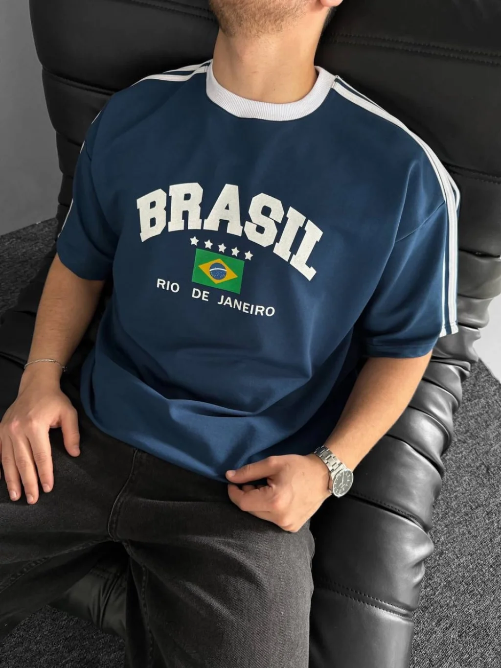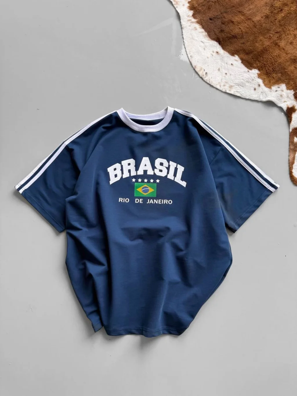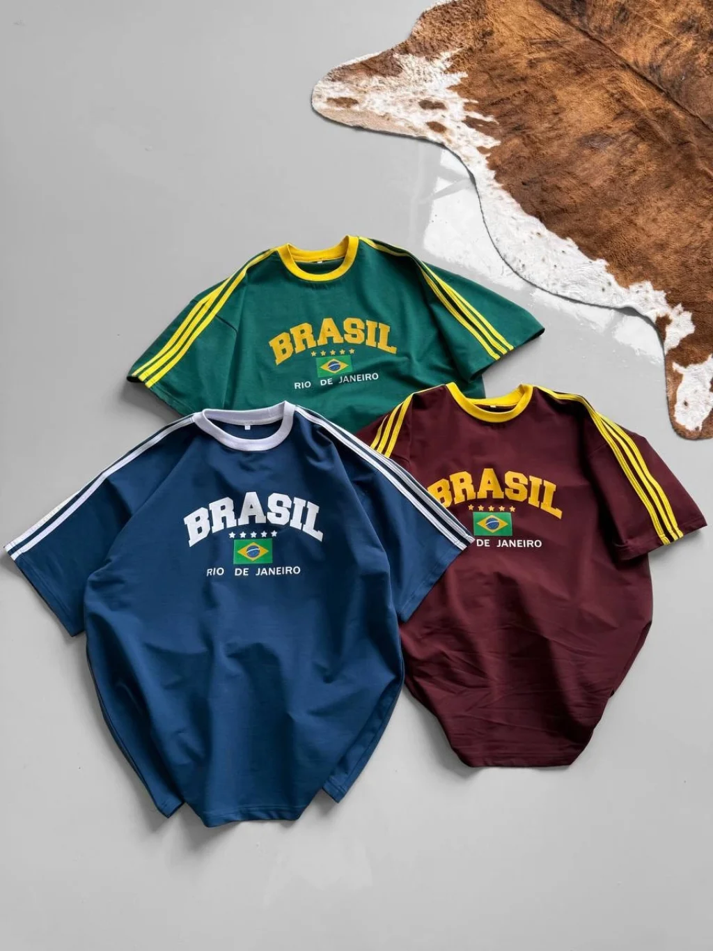 Bordo Brasil Oversize Unisex Bisiklet Yaka Tshirt