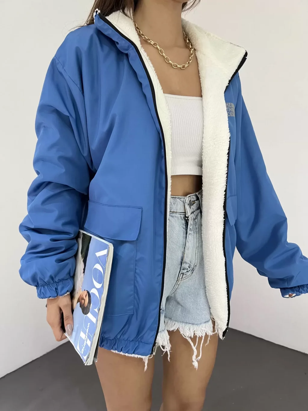 Mavi NK Oversize Unisex Çift Taraflı Mont