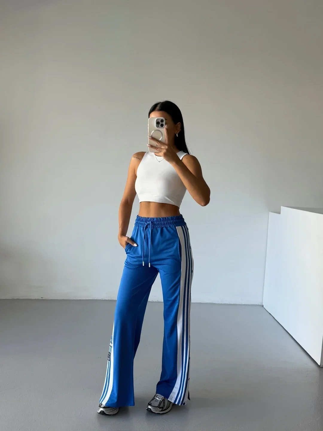 Mavi Çıt Çıt Detay Üç Şeritli Eşofman