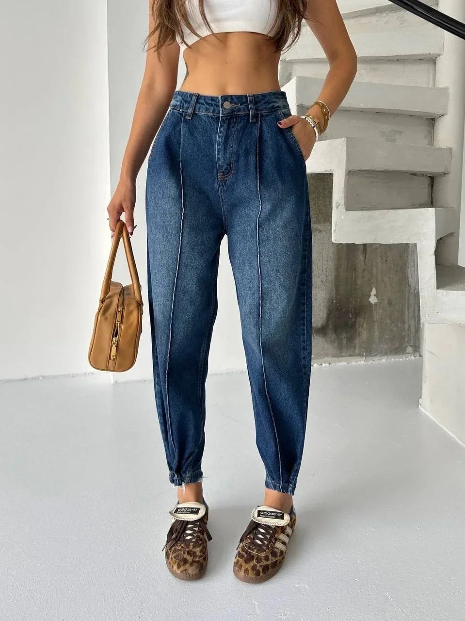 Mavi Çıt Çıt Paça Detay Balon Jean Pantolon