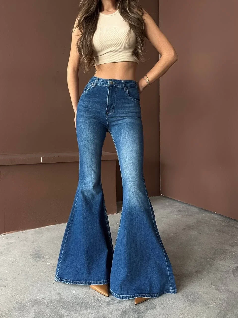 Mavi İspanyol Paça Likralı Kot Pantolon