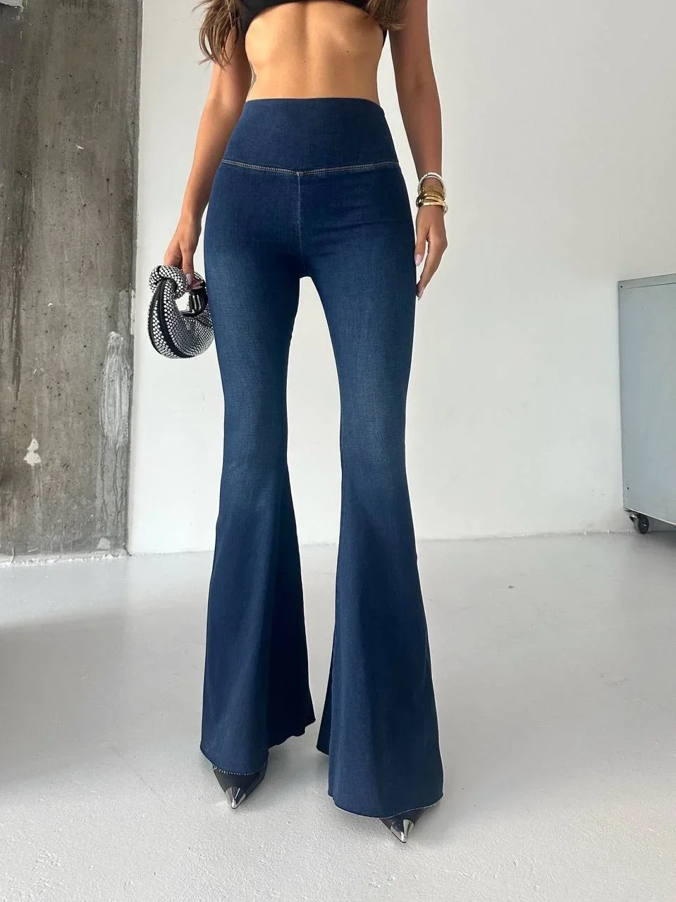 Mavi İspanyol Paça Yüksek Bel Jean Tayt