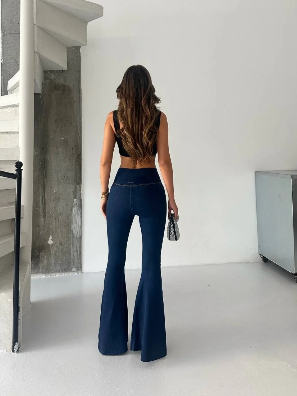Lacivert İspanyol Paça Yüksek Bel Jean Tayt