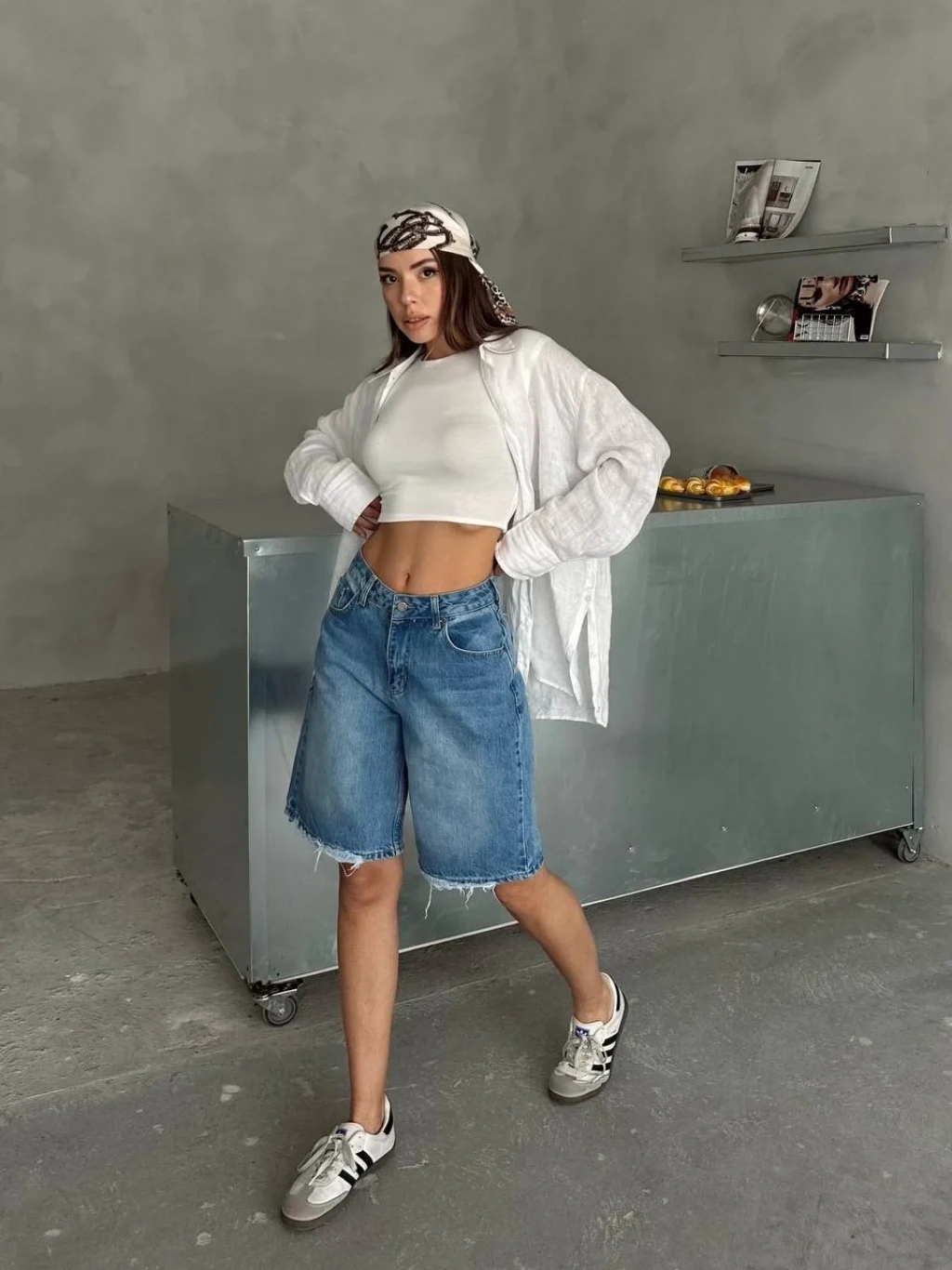 Modaskop Mavi Street One Baggy Kot Şort, rahat ve şık görünümüyle dikkat çeker.