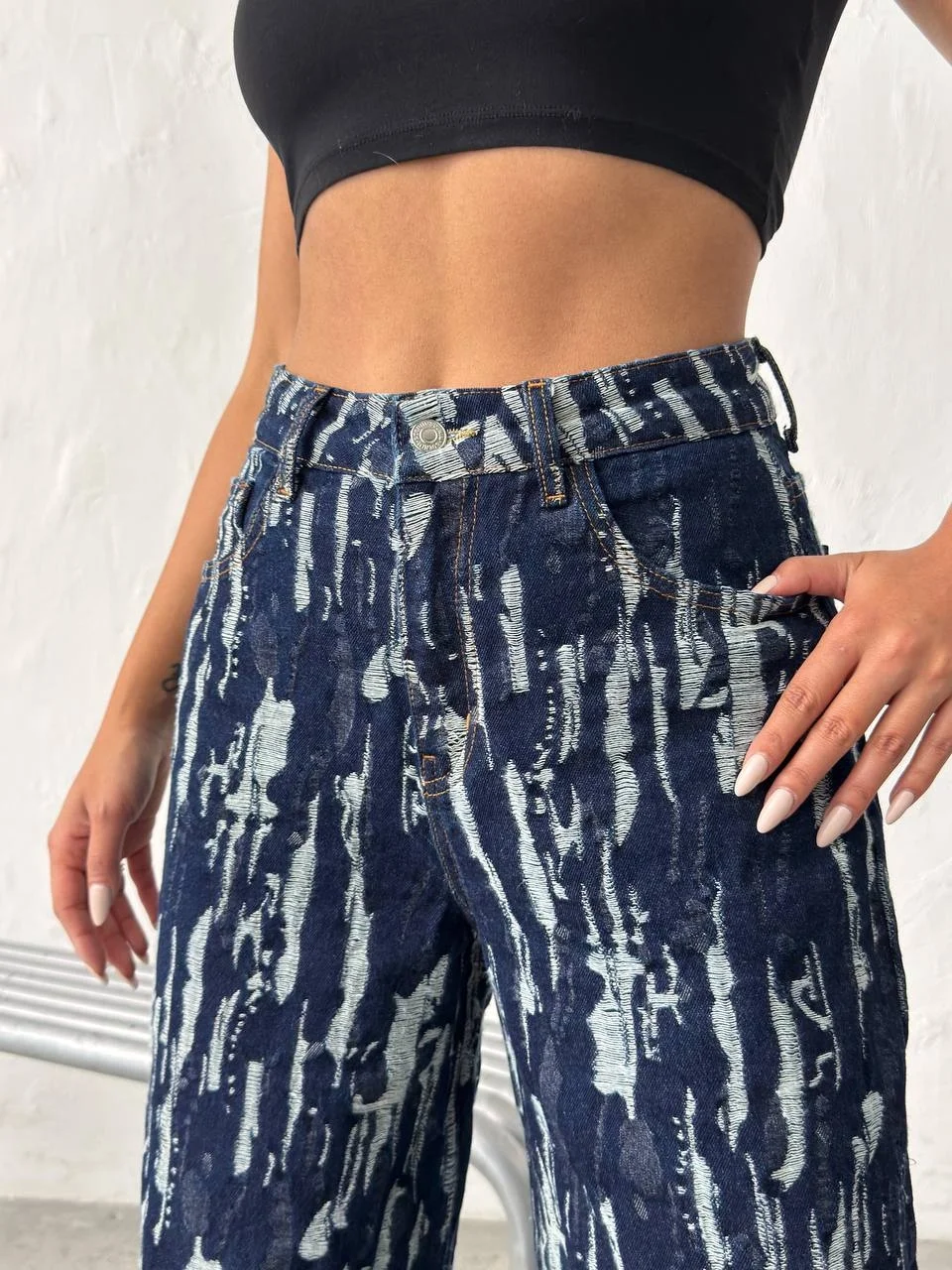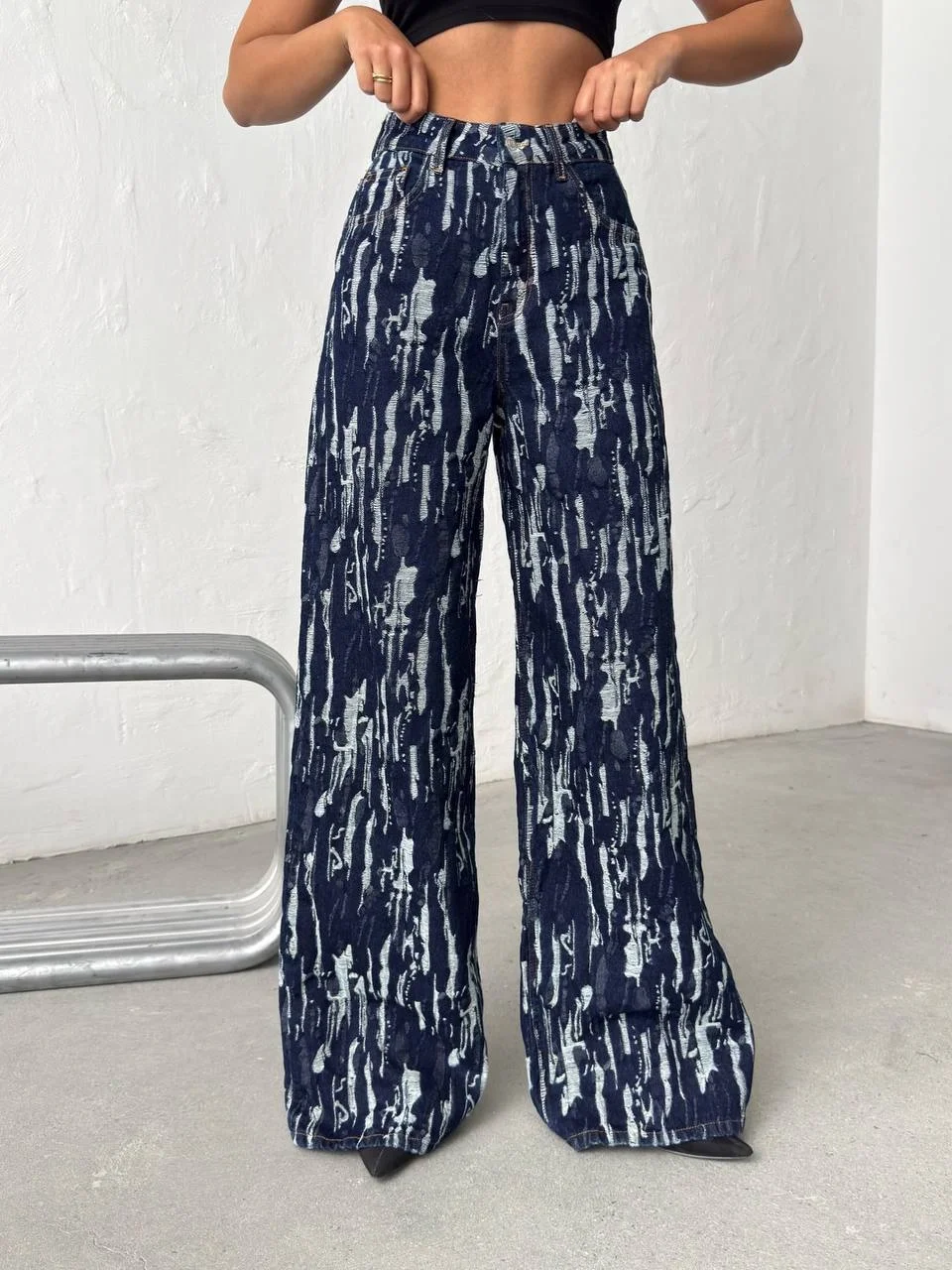 Şehir stiline modern ve iddialı bir dokunuş katmak isteyenler için tasarlanan Yıkamalı Desenli Wide Leg Jean Pantolon, dikkat çekici denim dokusuyla yeni sezonun en trend parçalarından biridir. Özel yıkama efekti sayesinde pantolon yüzeyinde oluşan desenli ve hareketli görünüm, klasik jean modellerinden farklı ve özgün bir stil sunar.