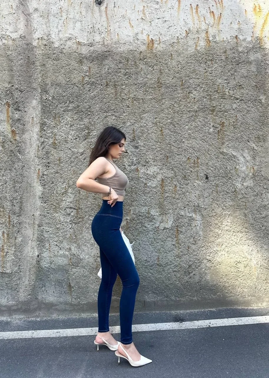 Mavi Yüksek Bel En Boy Likralı Kot Tayt