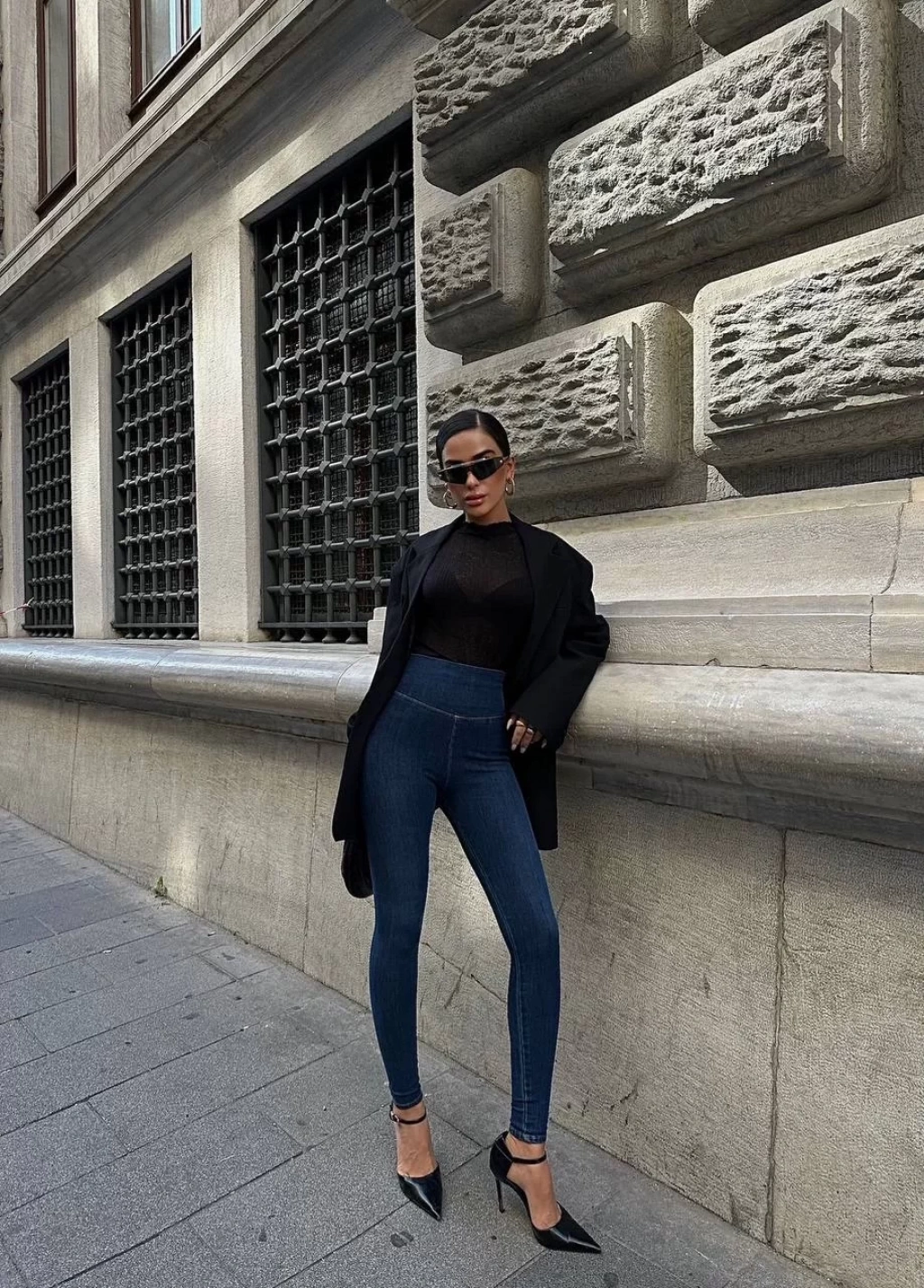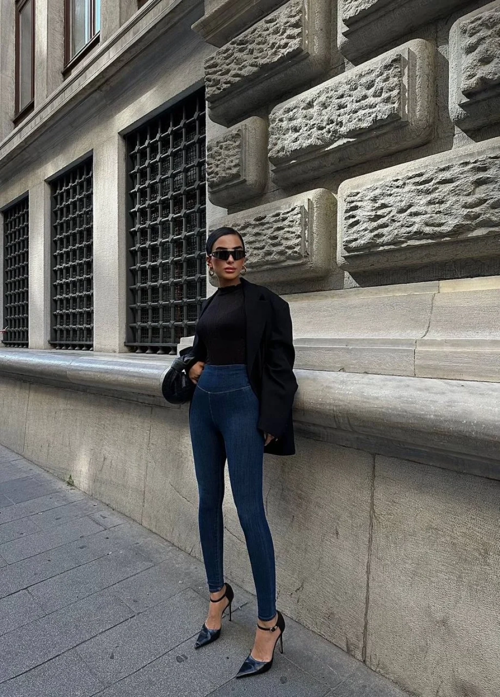 Siyah Yüksek Bel En Boy Likralı Kot Tayt