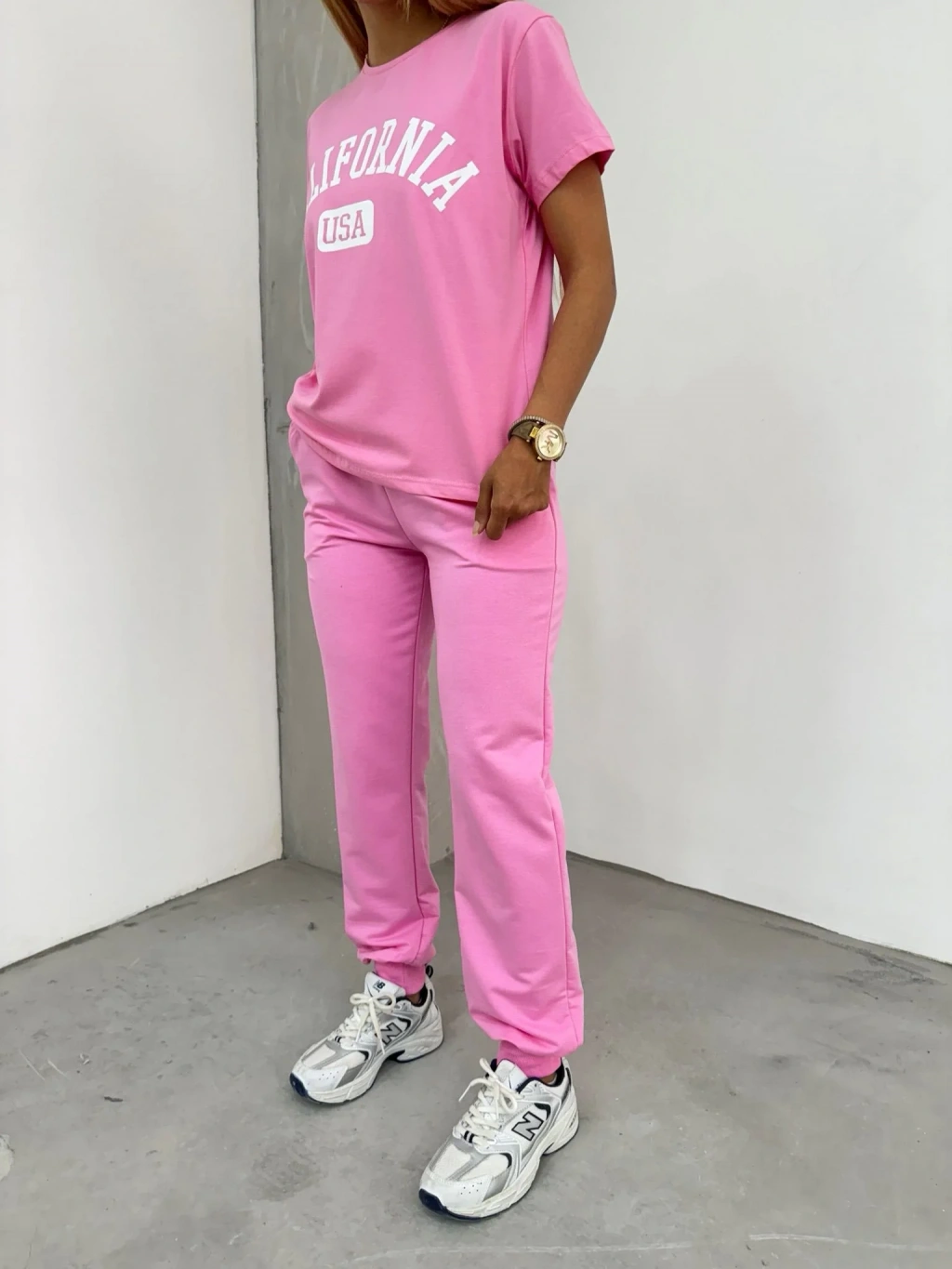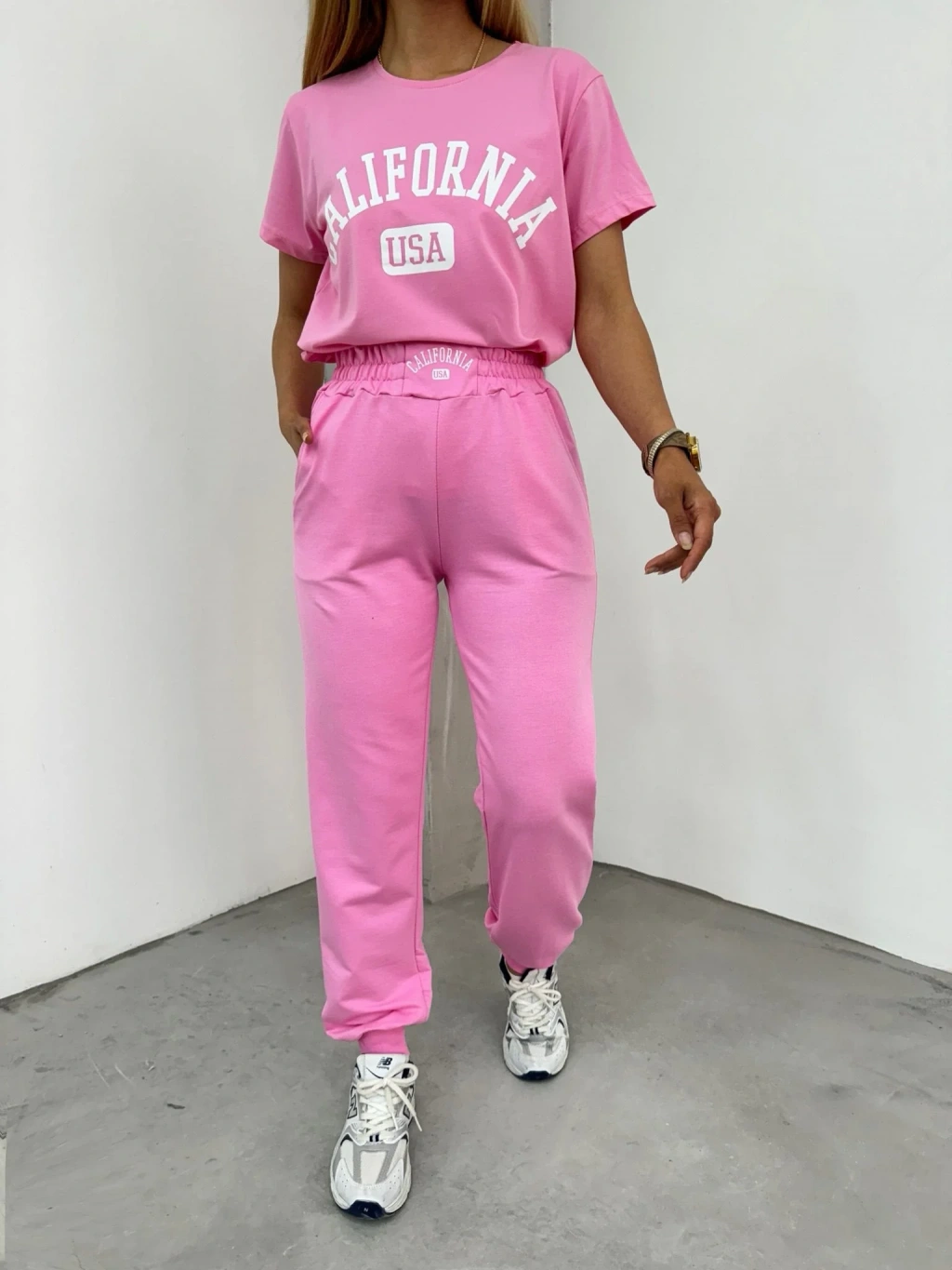 Modaskop Pudra California Usa Eşofman Takımı, rahatlığı ve şıklığı bir arada sunar.