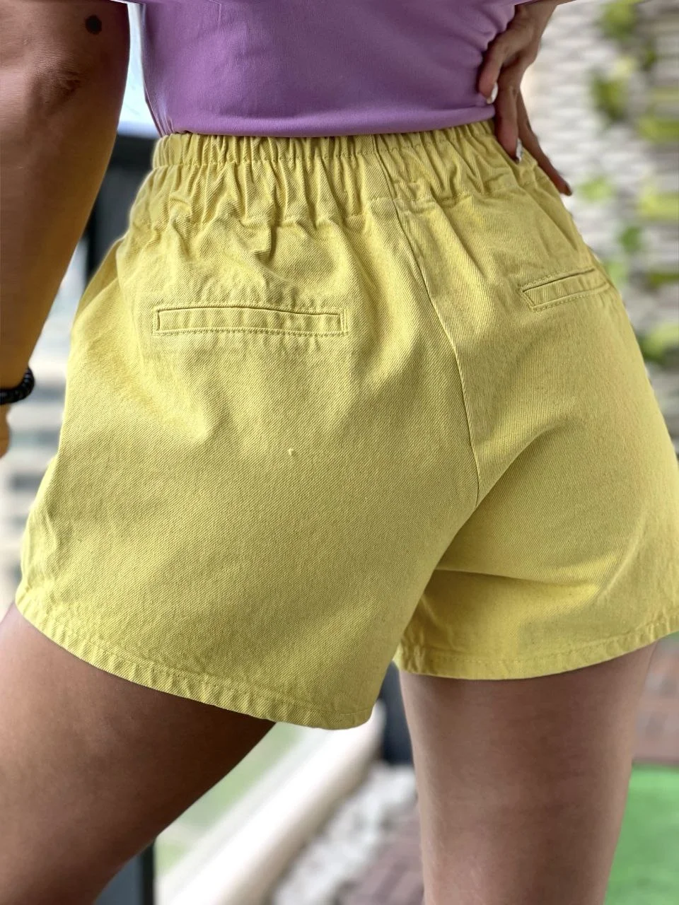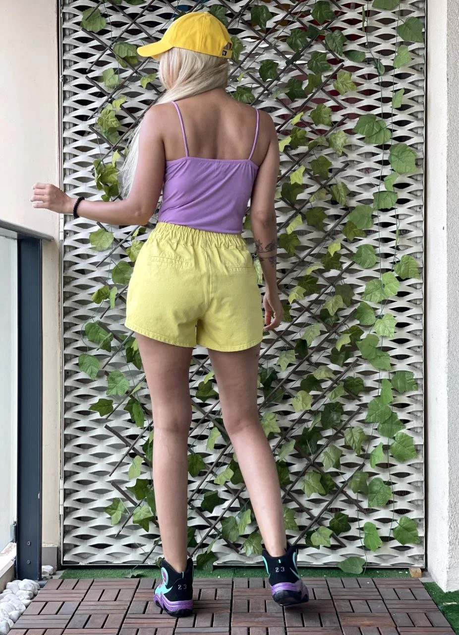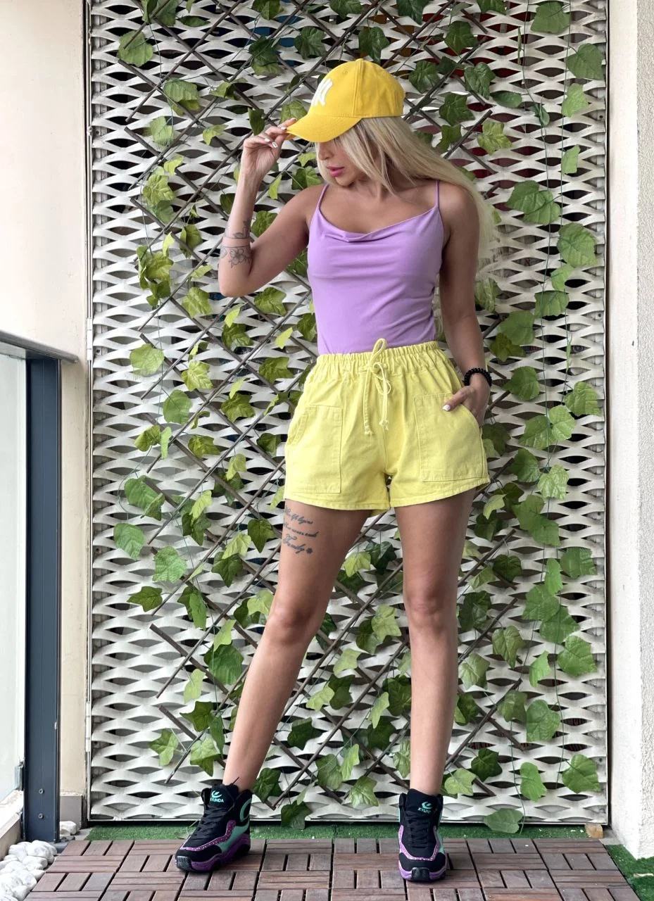 Sarı Bağcıklı Kot Şort
