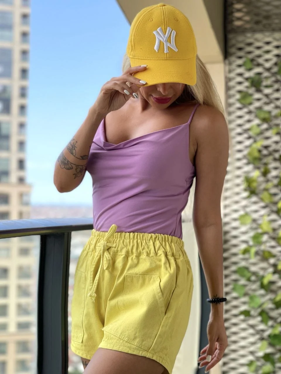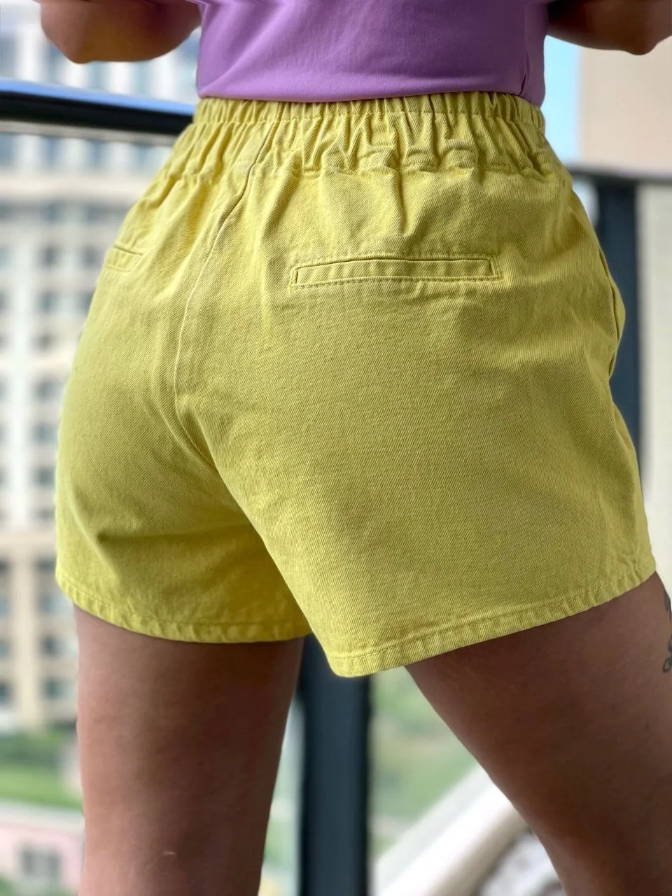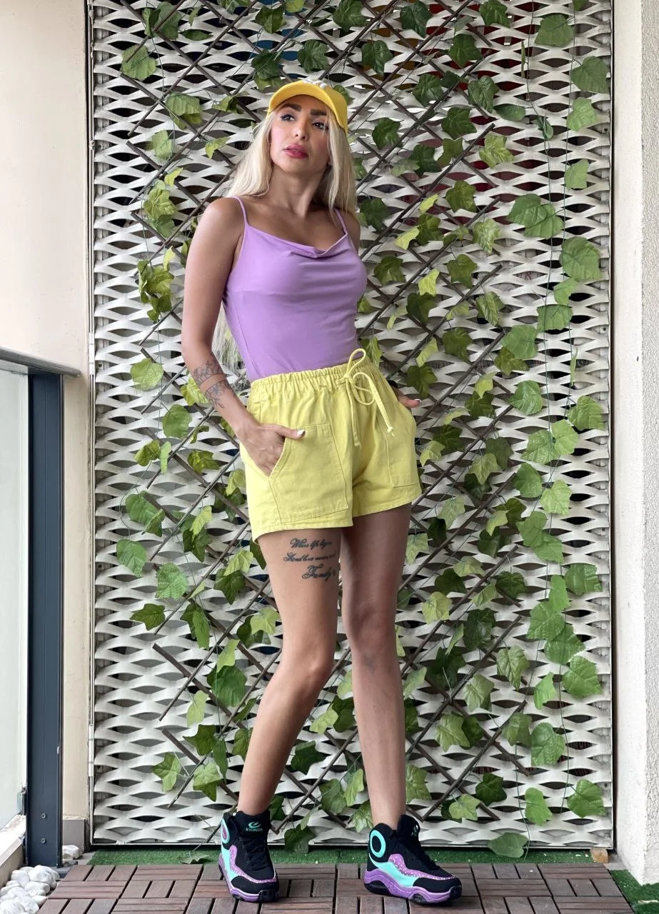 Sarı Bağcıklı Kot Şort