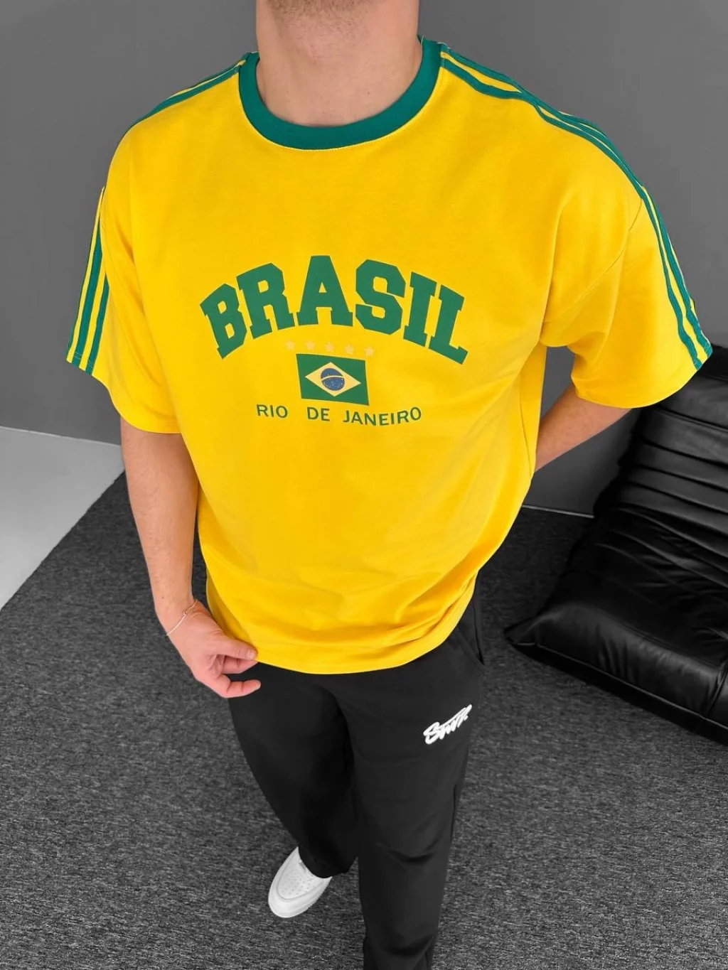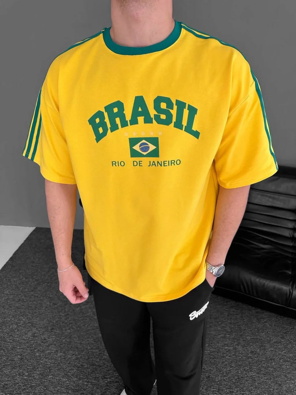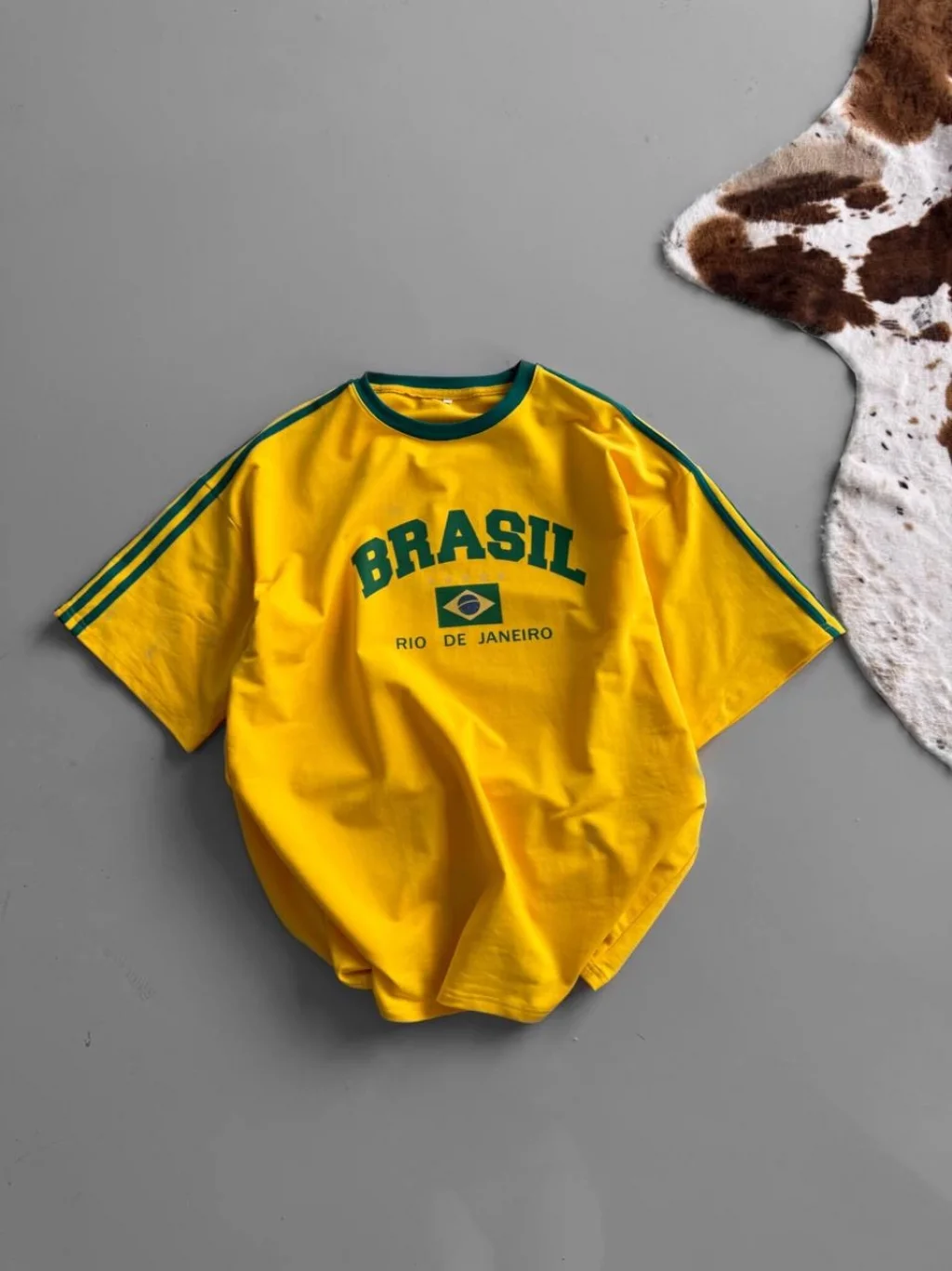 Sarı Brasil Oversize Unisex Bisiklet Yaka Tshirt