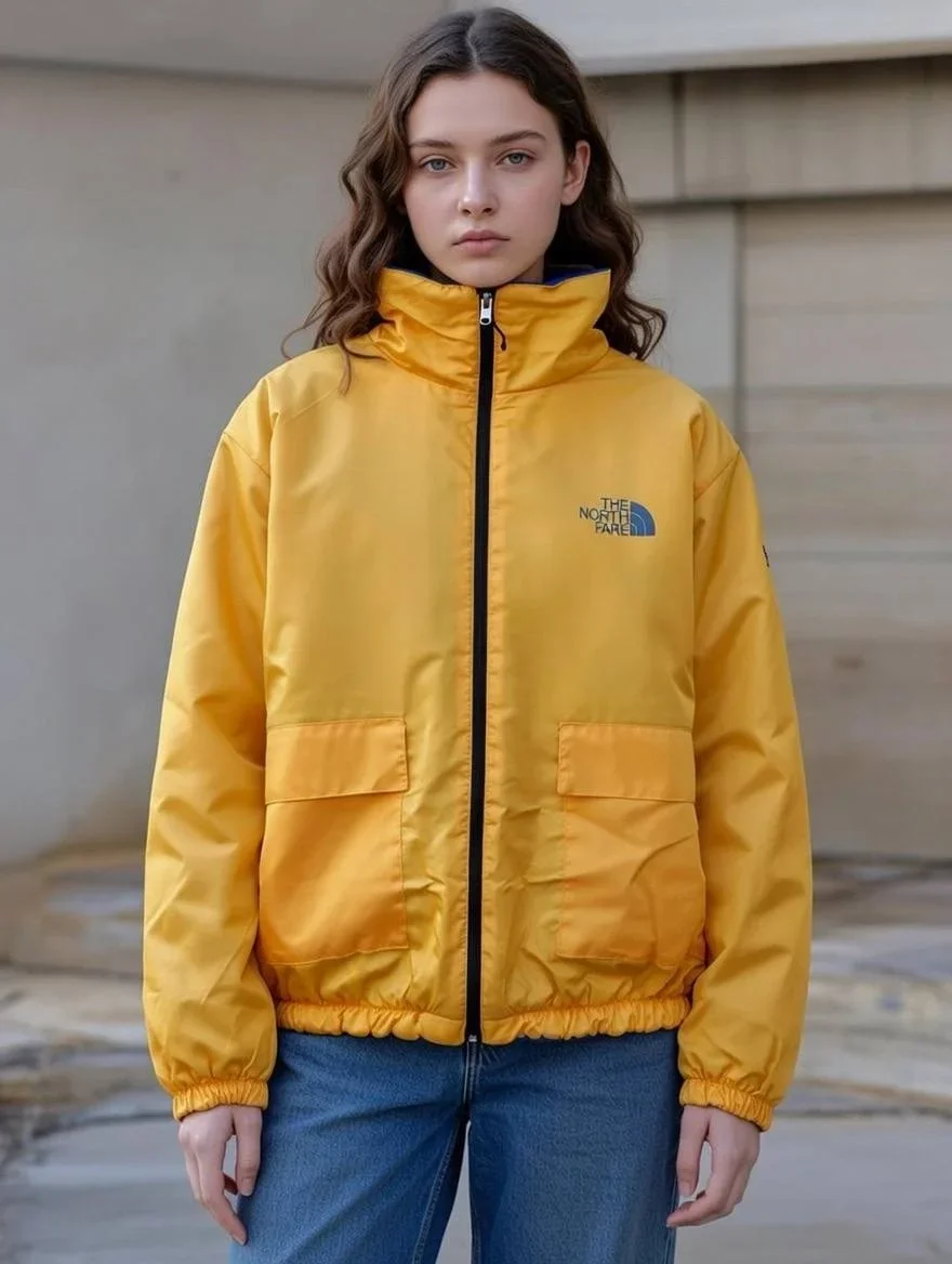 • Sarı Çift Taraflı Giyilebilir Kürklü Mont
