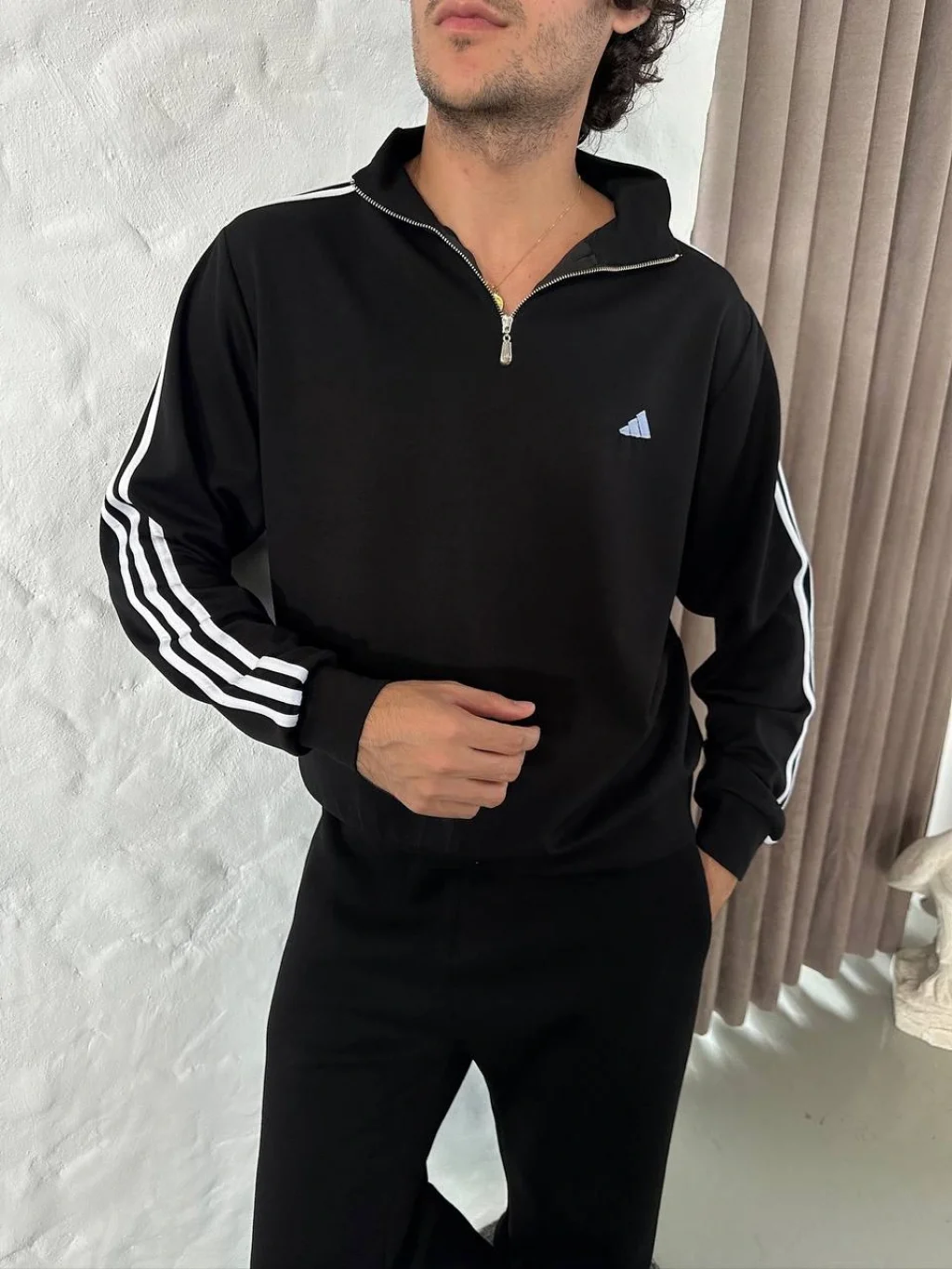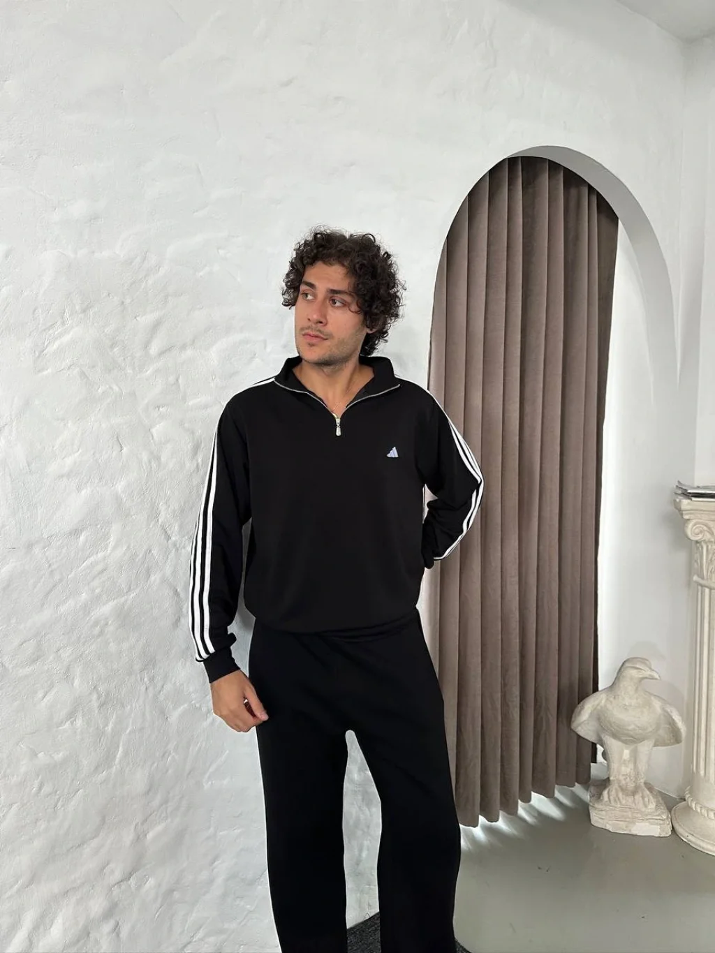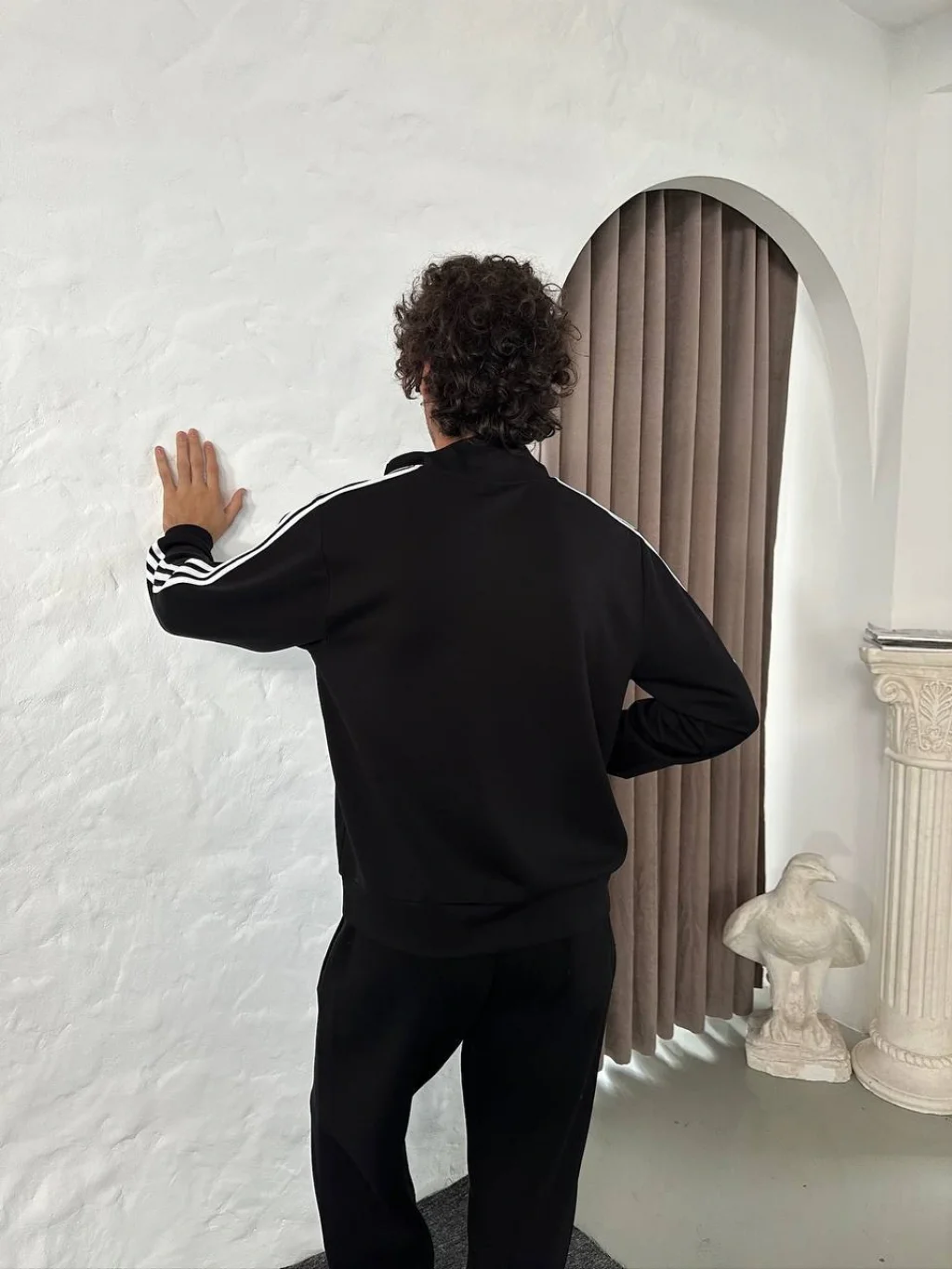 Siyah ADD Üç Şerit Fermuar Yaka Unisex Oversize Sweat