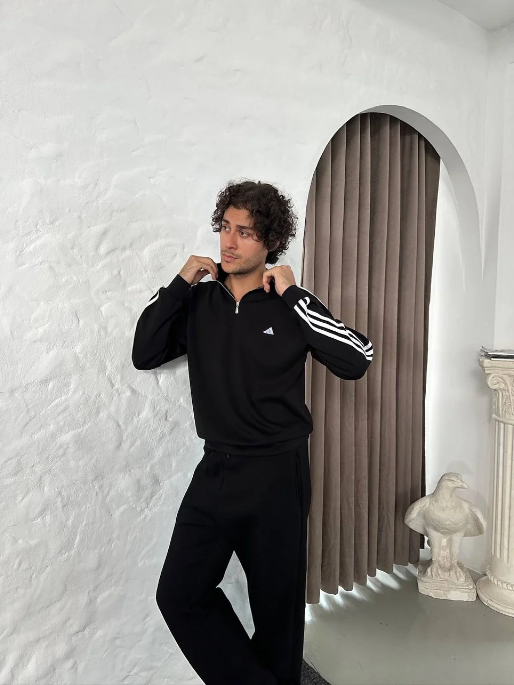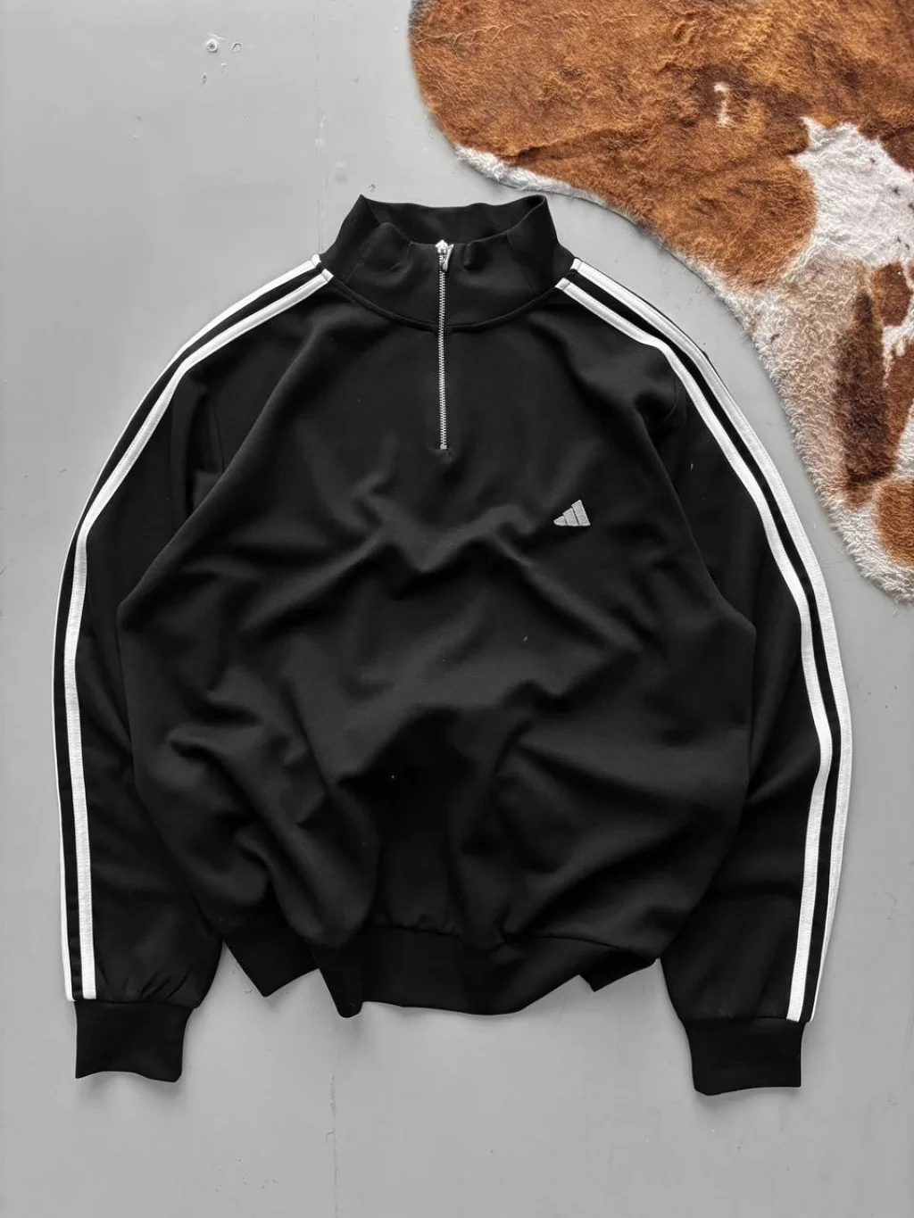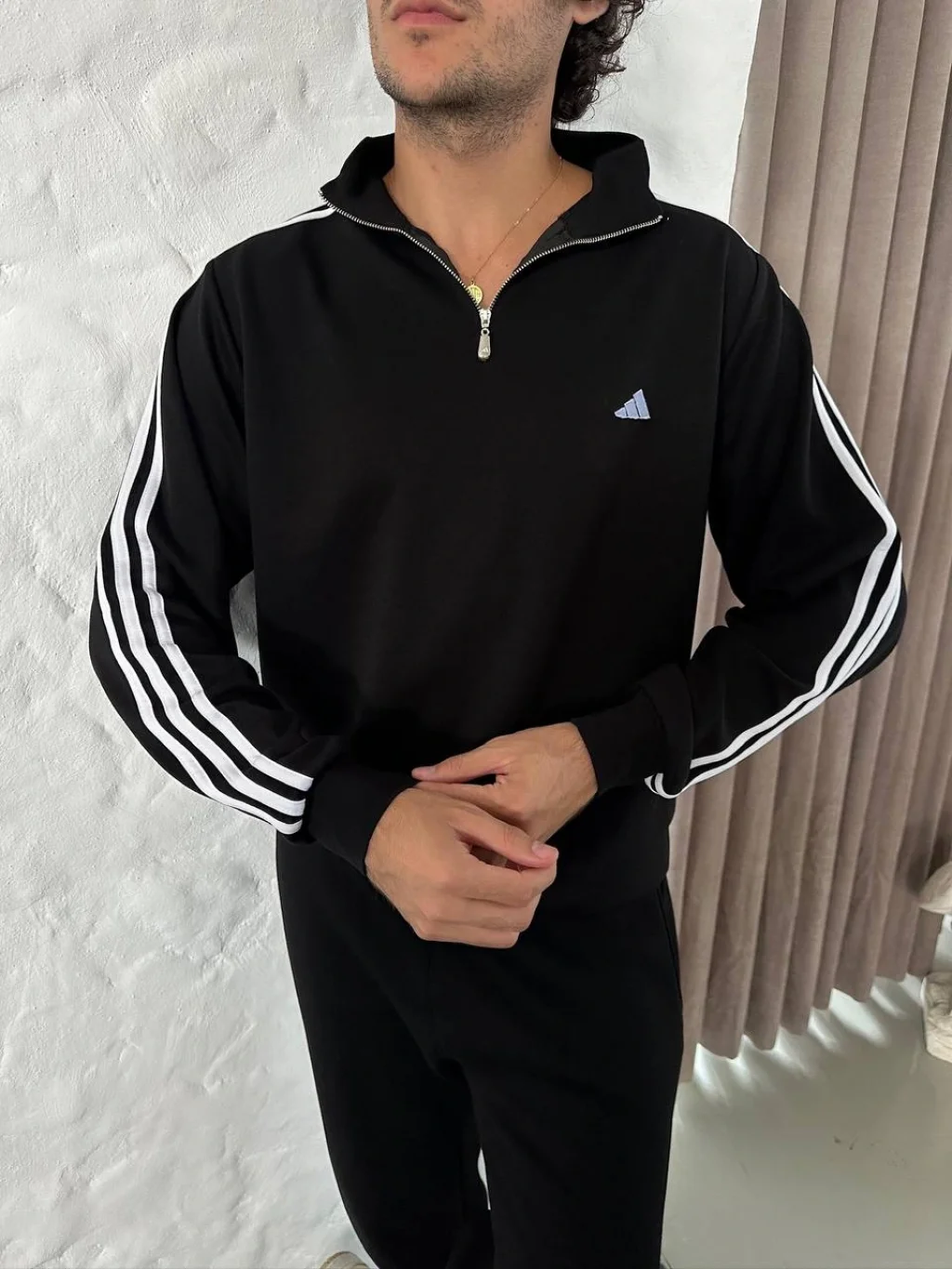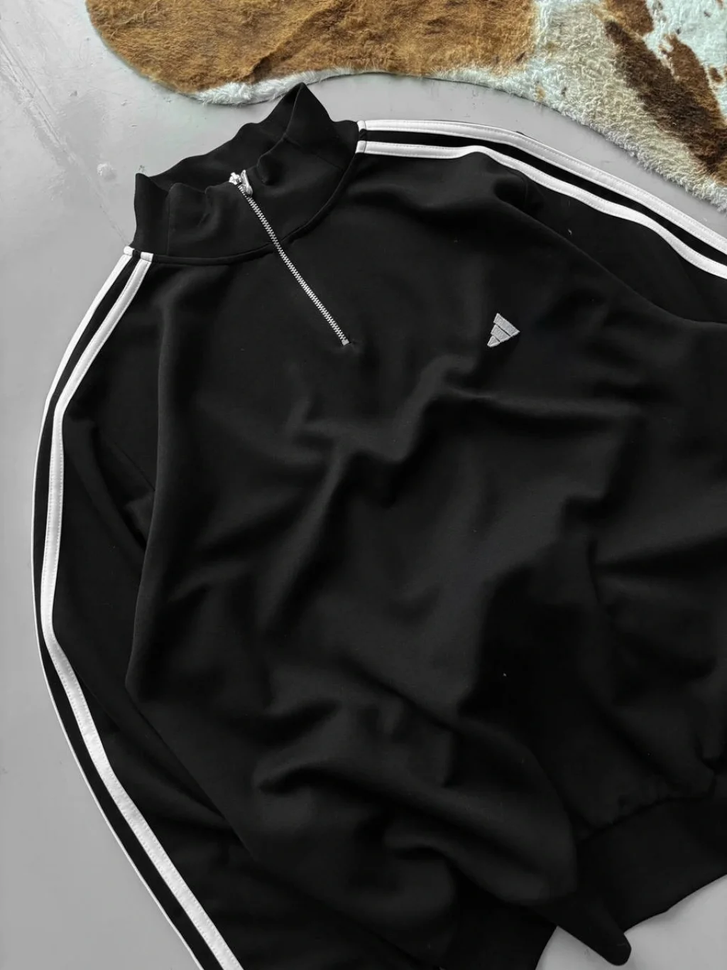 Siyah ADD Üç Şerit Fermuar Yaka Unisex Oversize Sweat