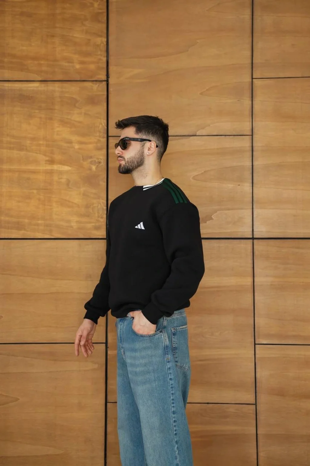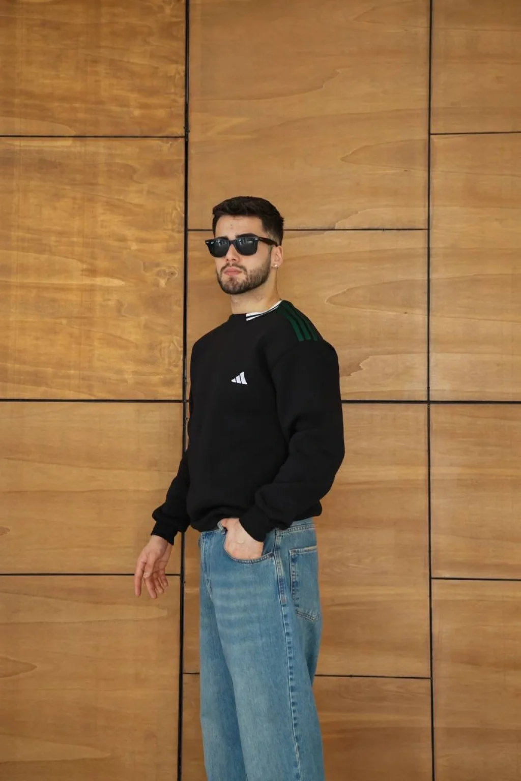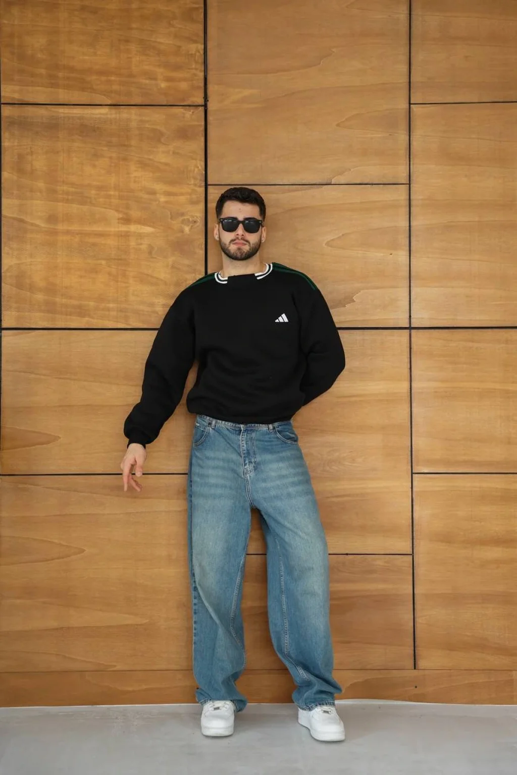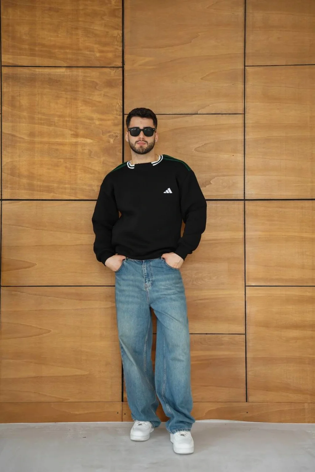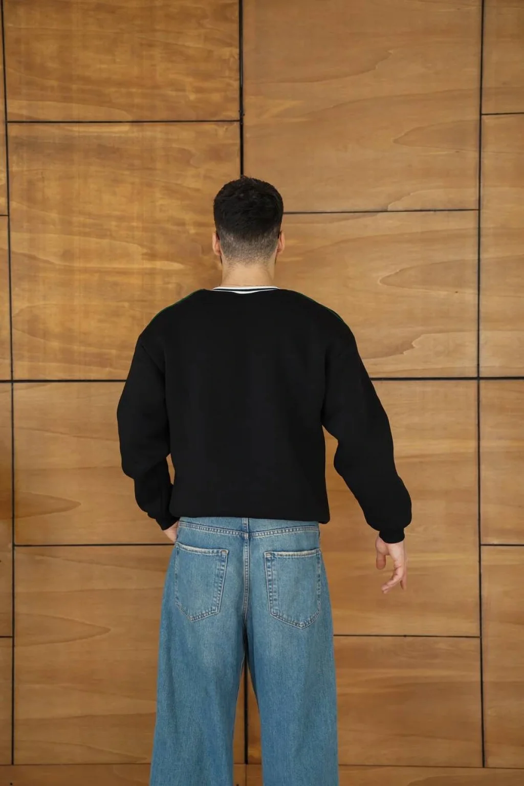 Siyah Zig Zag Nakış Unisex Oversize Sweat
