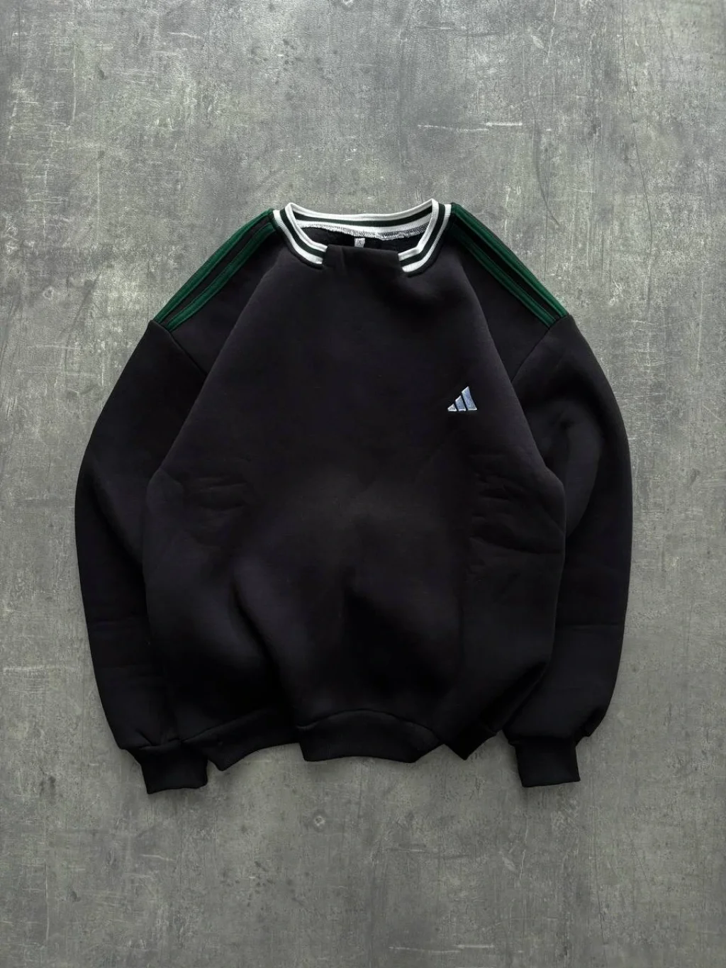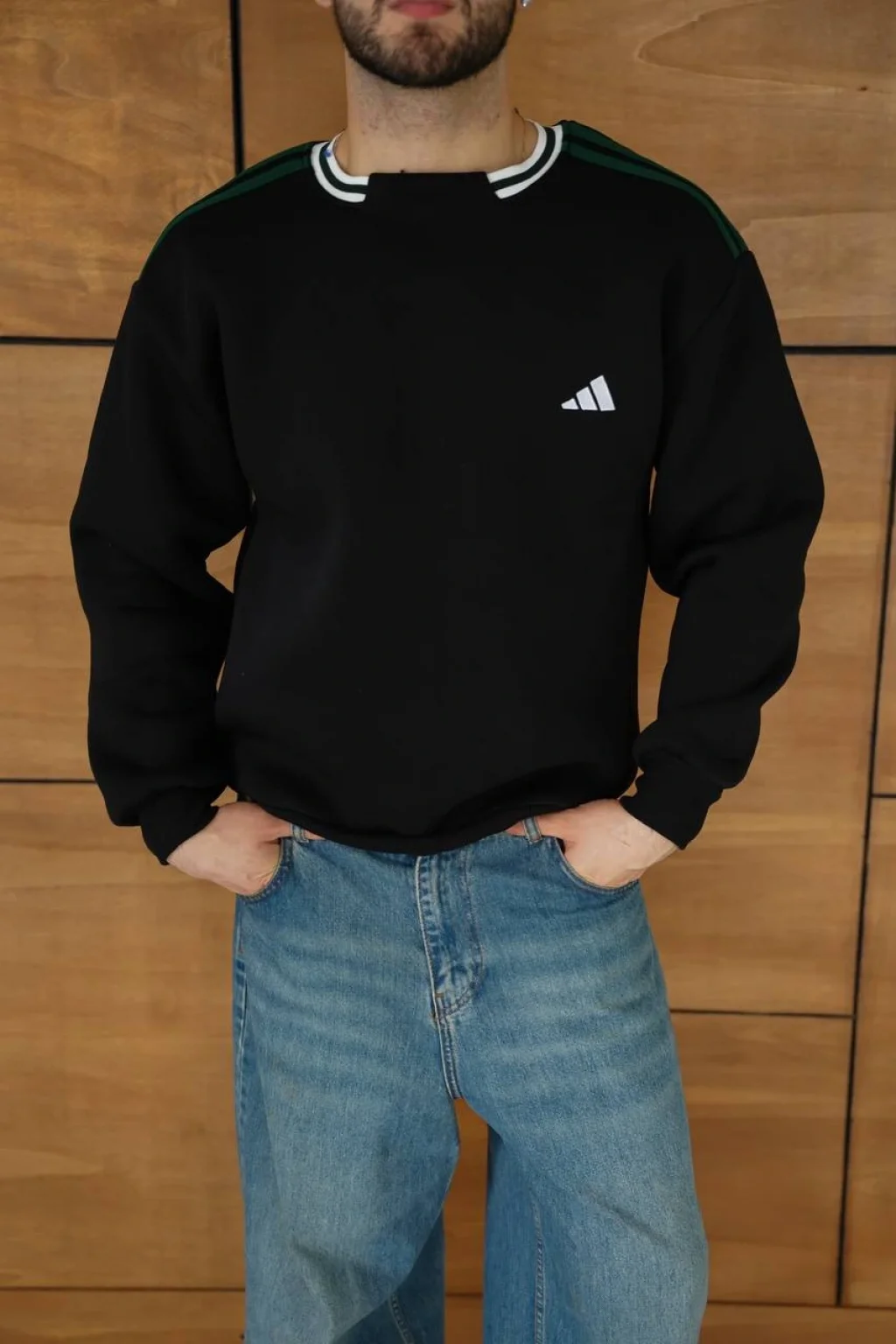 Siyah ADD Üç Şerit Fermuar Yaka Unisex Oversize Sweat