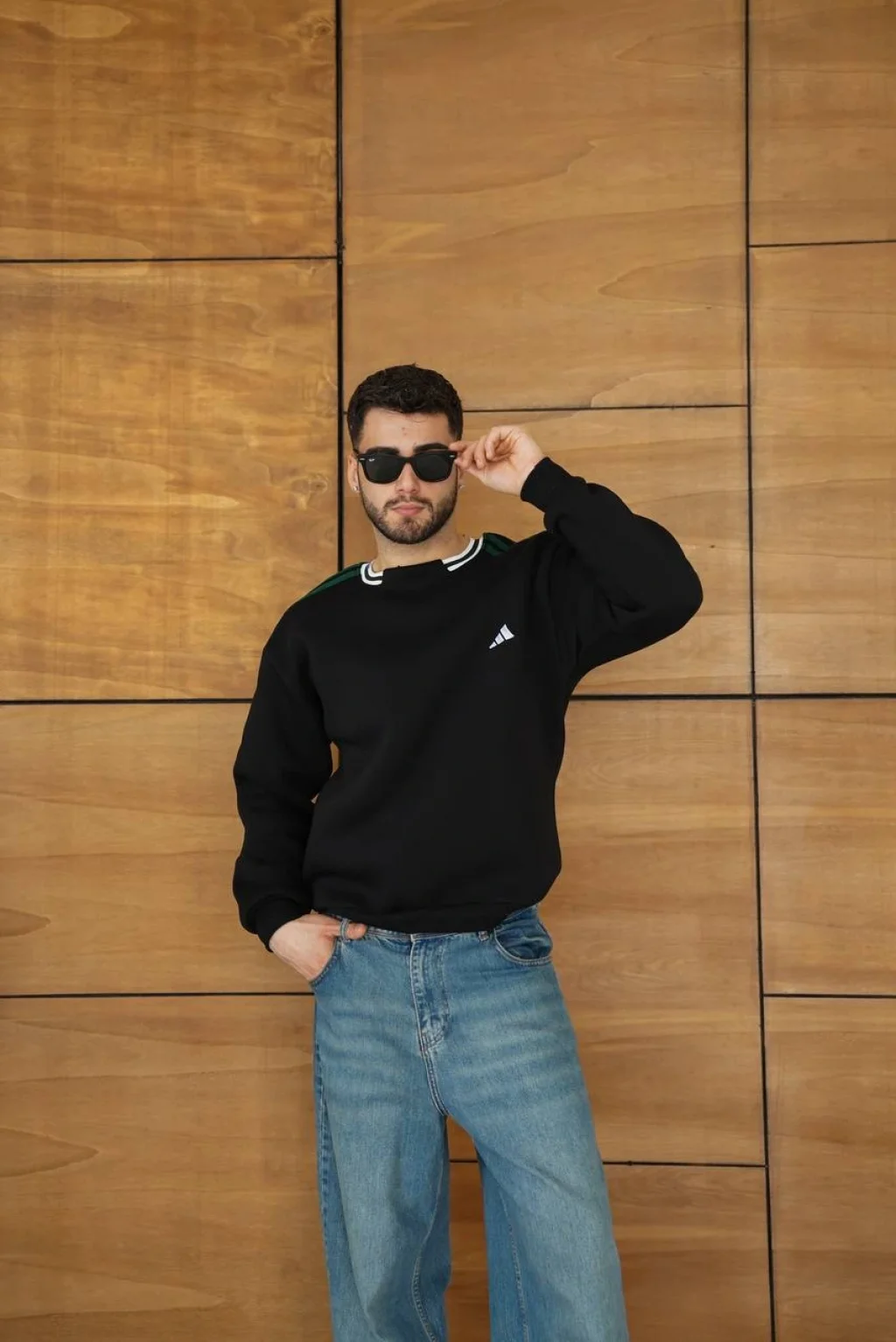 Siyah ADD Yaka Ribana Unisex Oversize Sweat