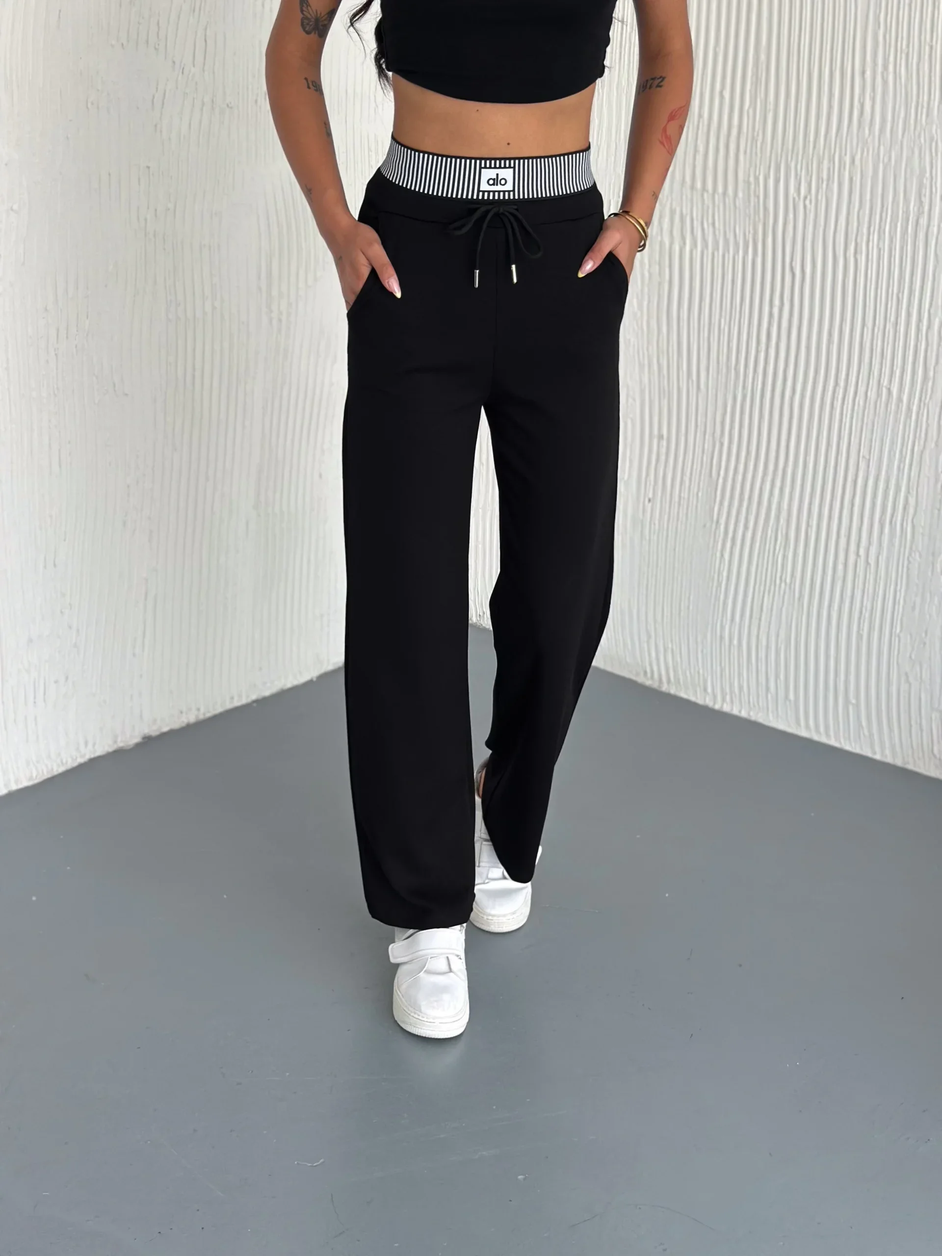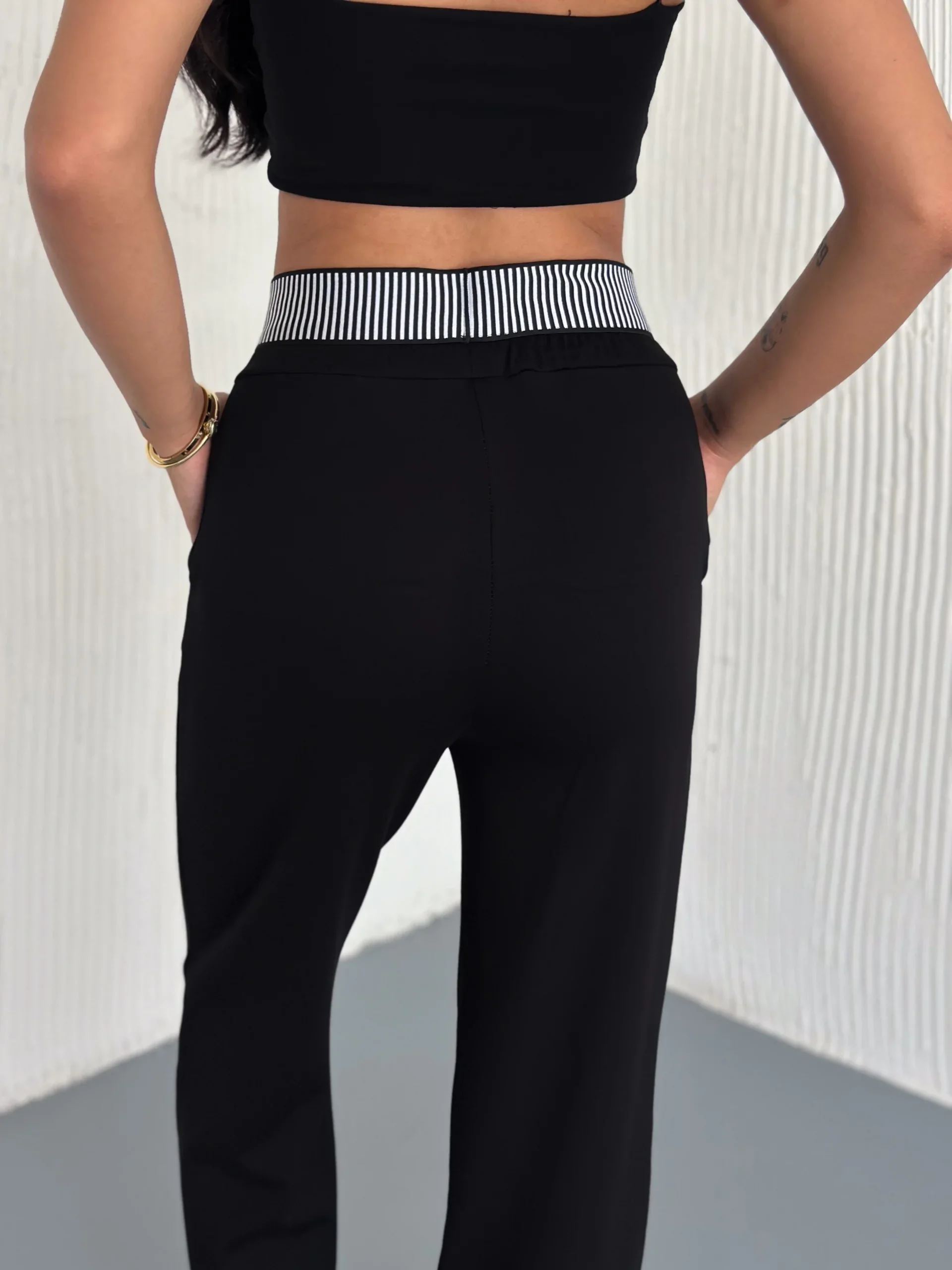 Siyah Alo Çizgili Ribana Pantolon