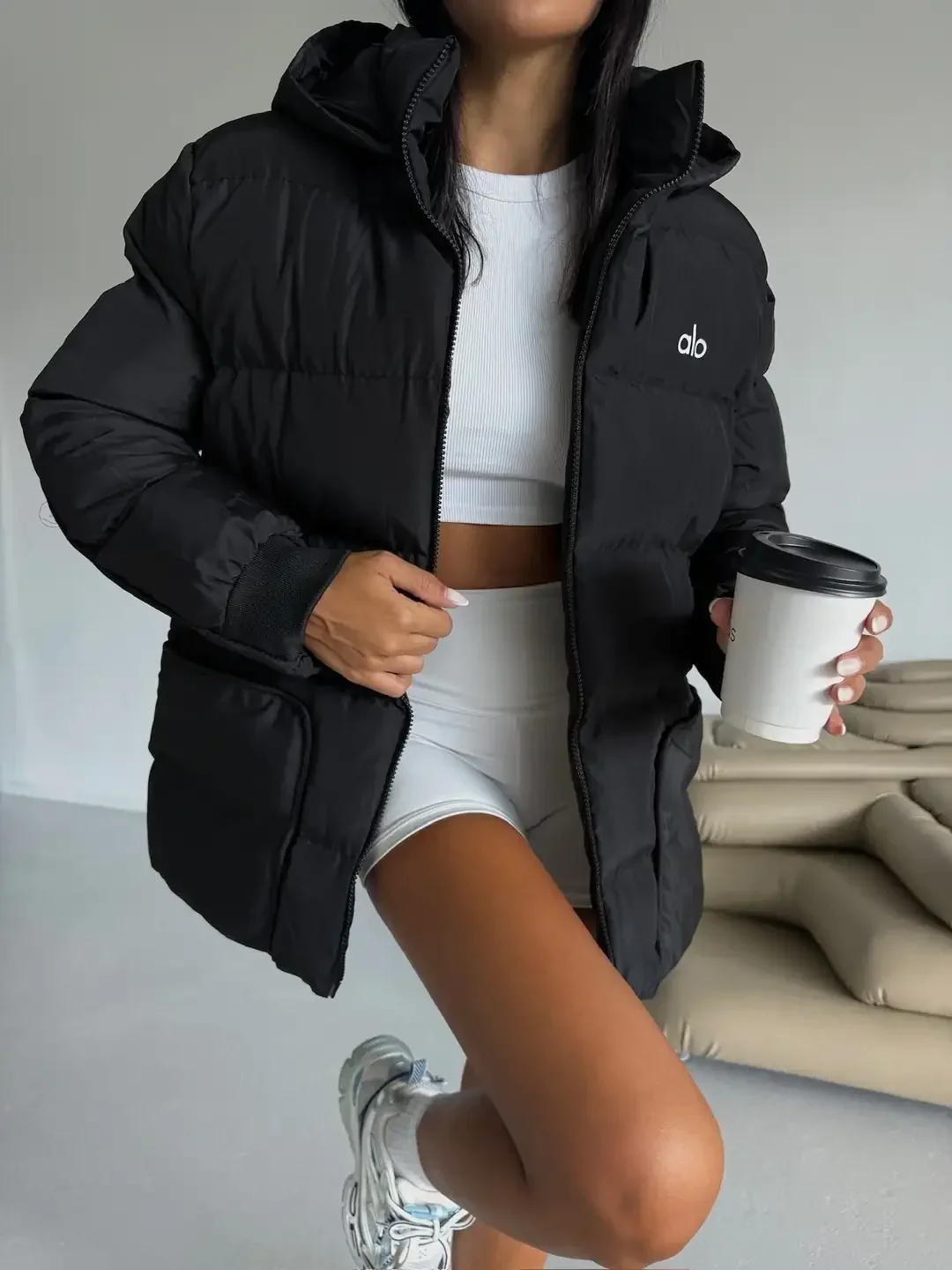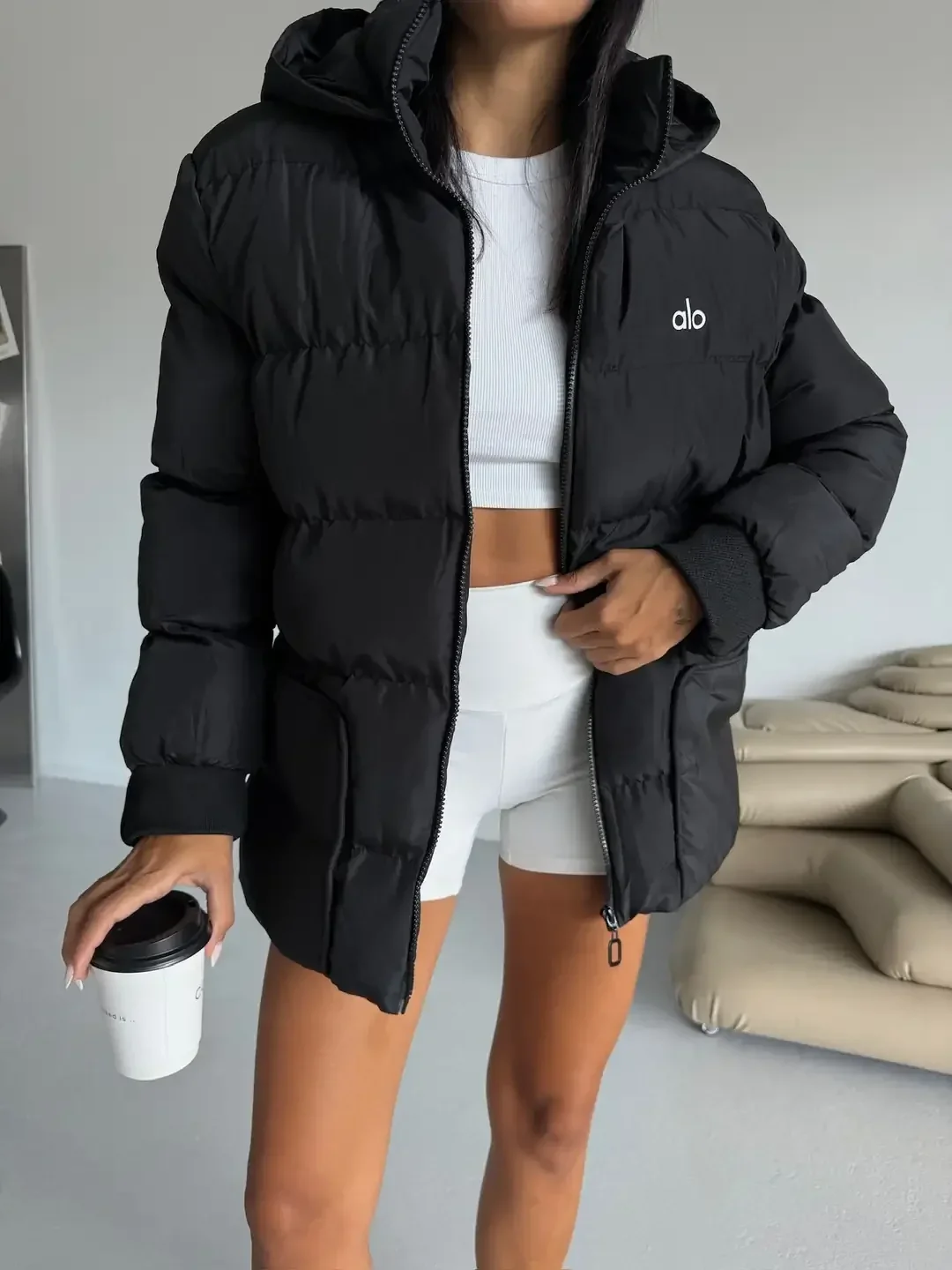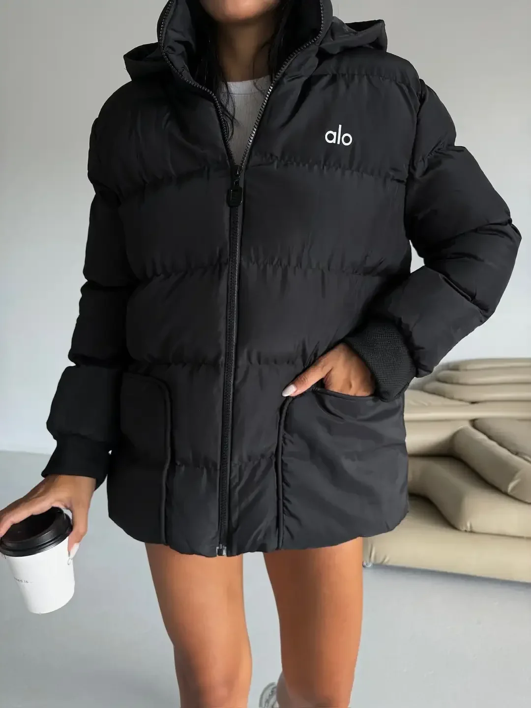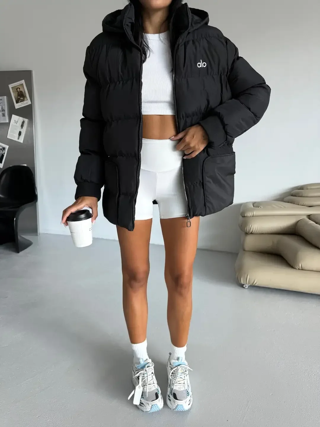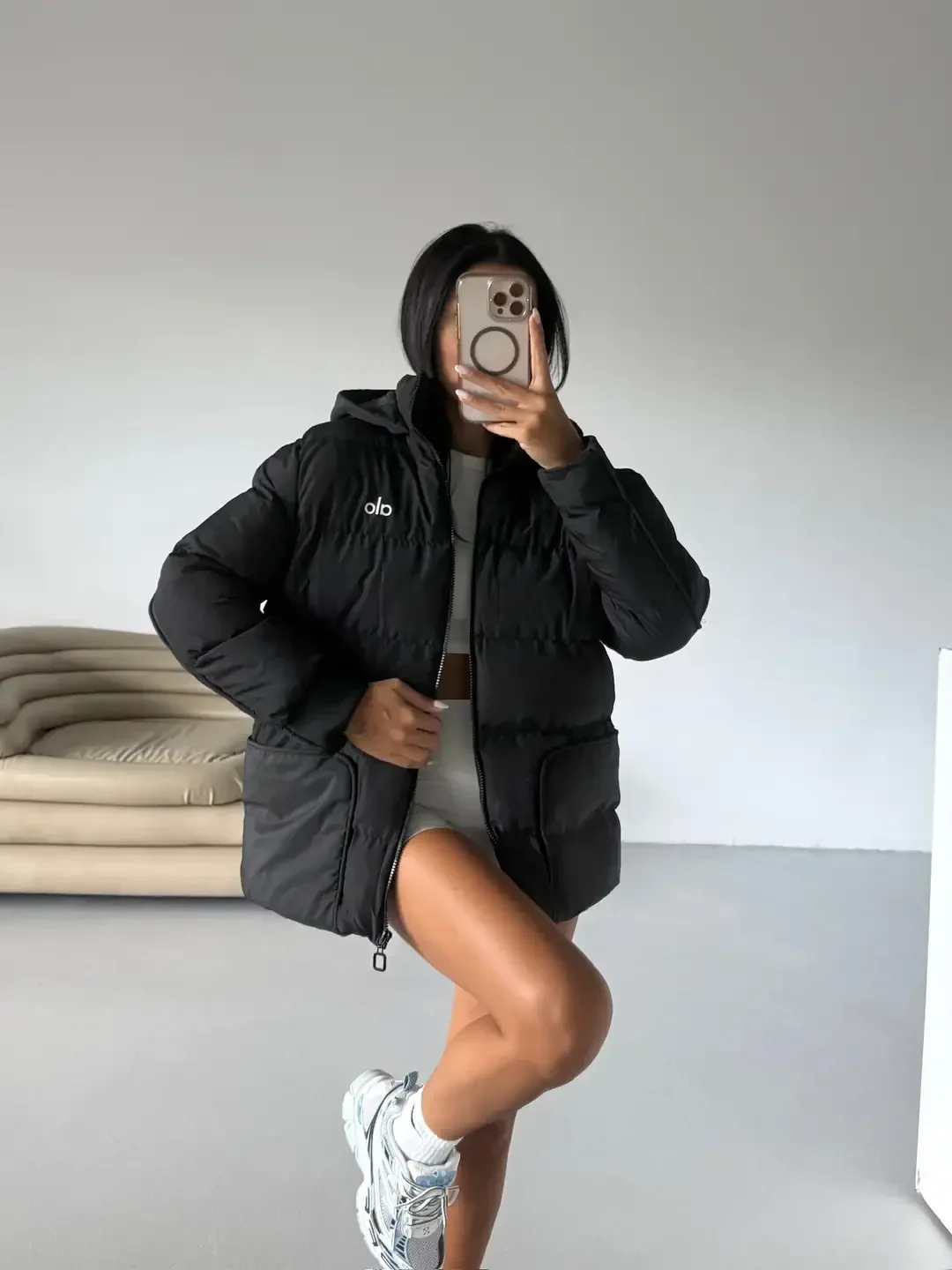 • Siyah Alo Oversize Kapşonlu Şişme Mont