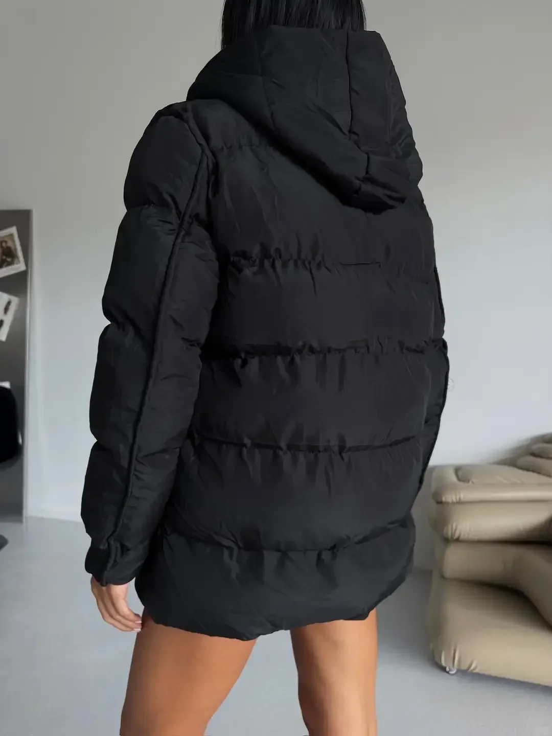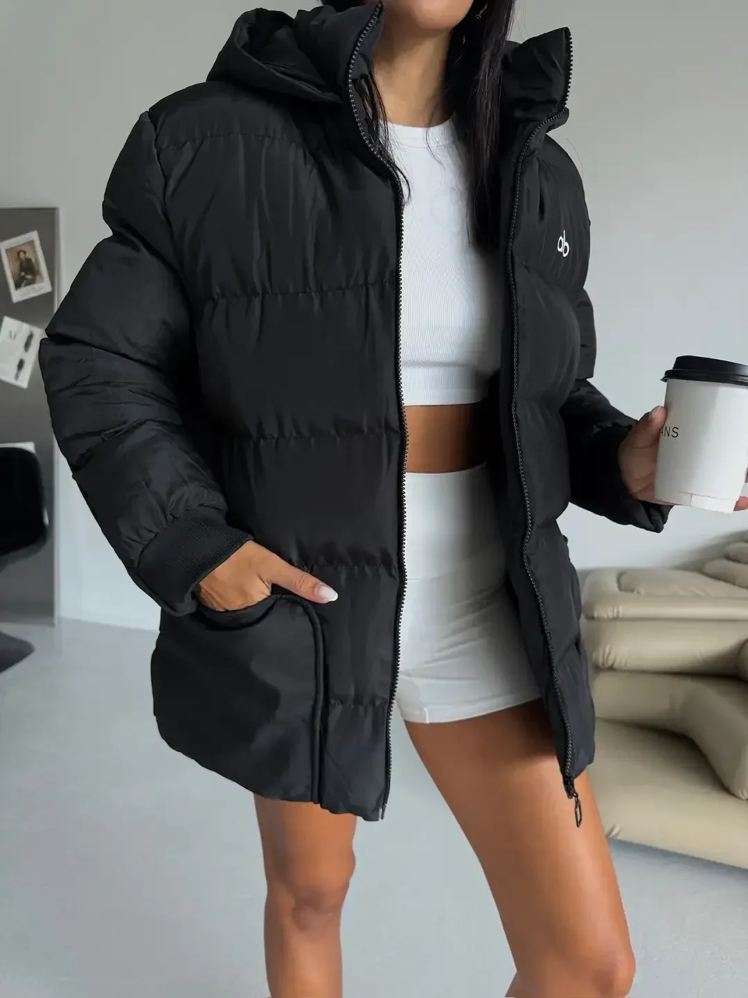 Siyah Alo Oversize Kapşonlu Şişme Mont