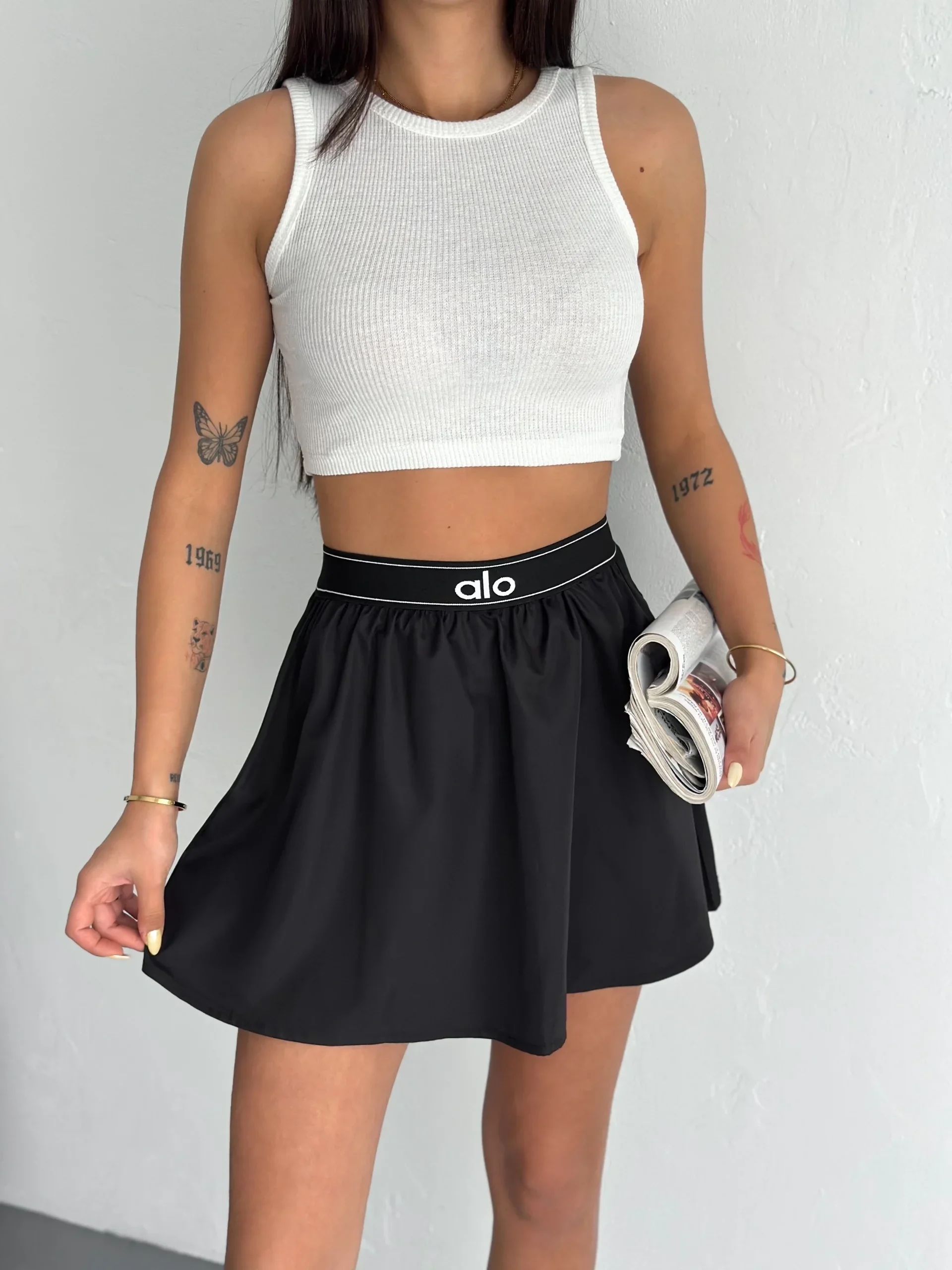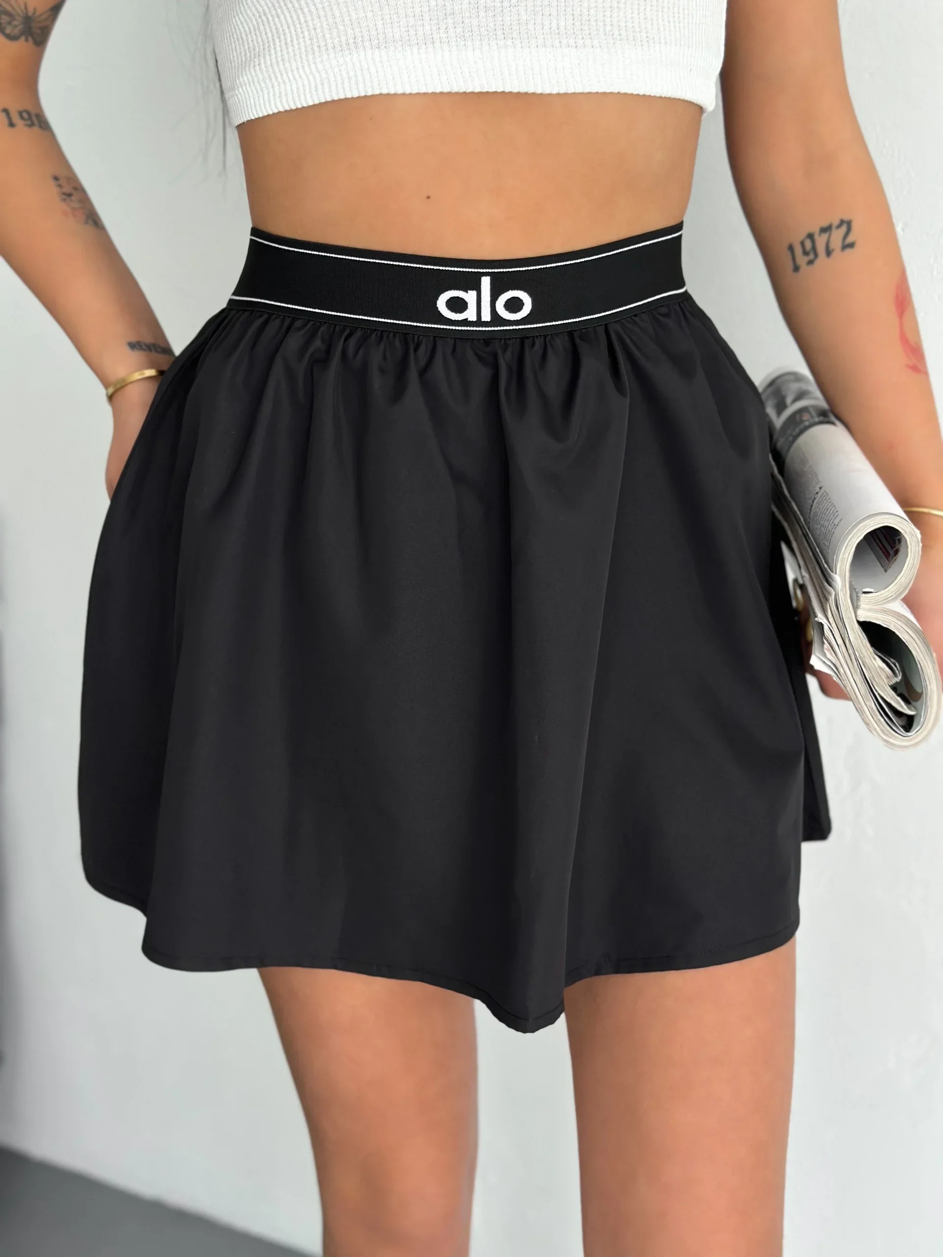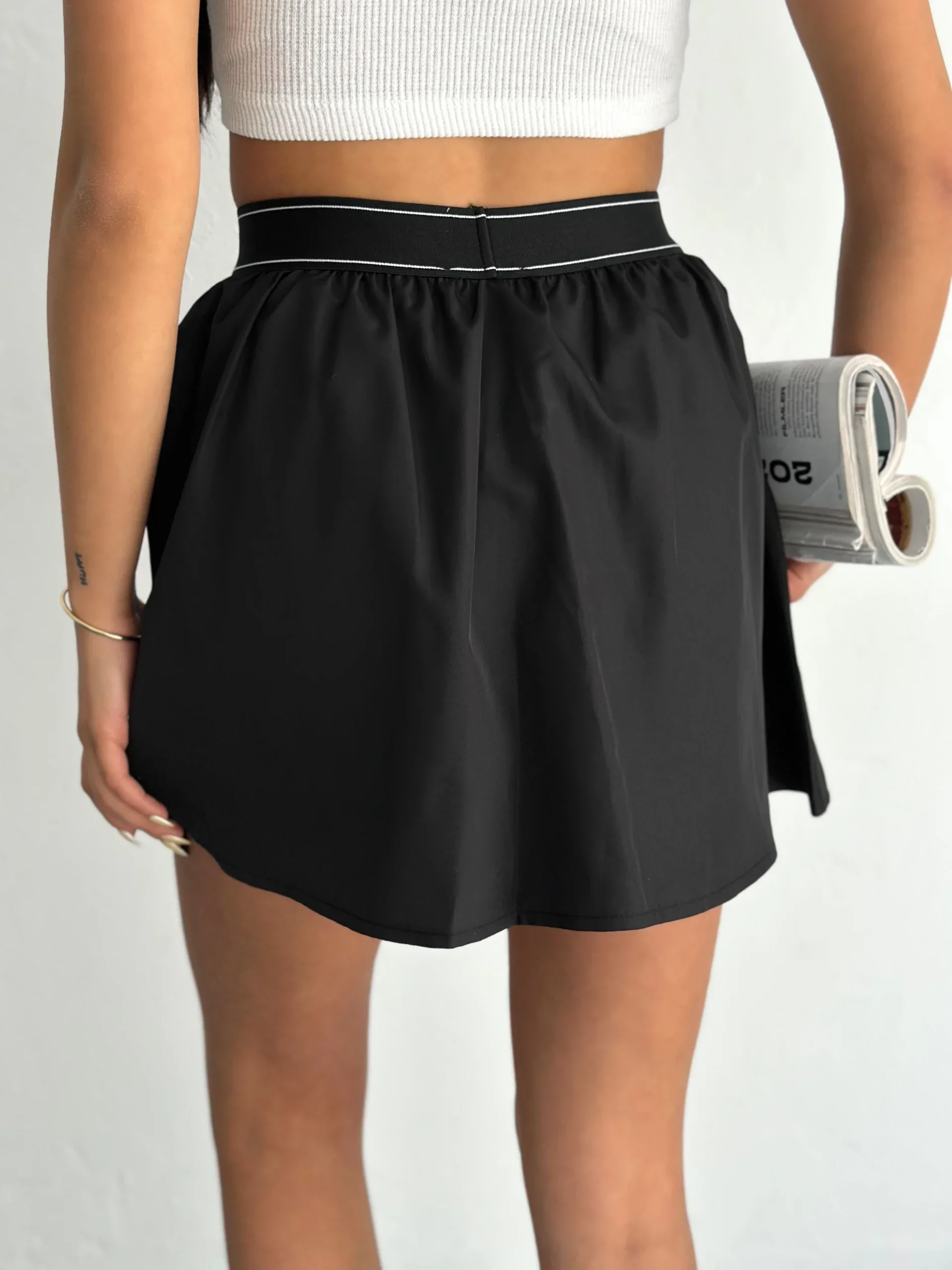 Siyah Alo Ribana Paraşüt Şort Etek