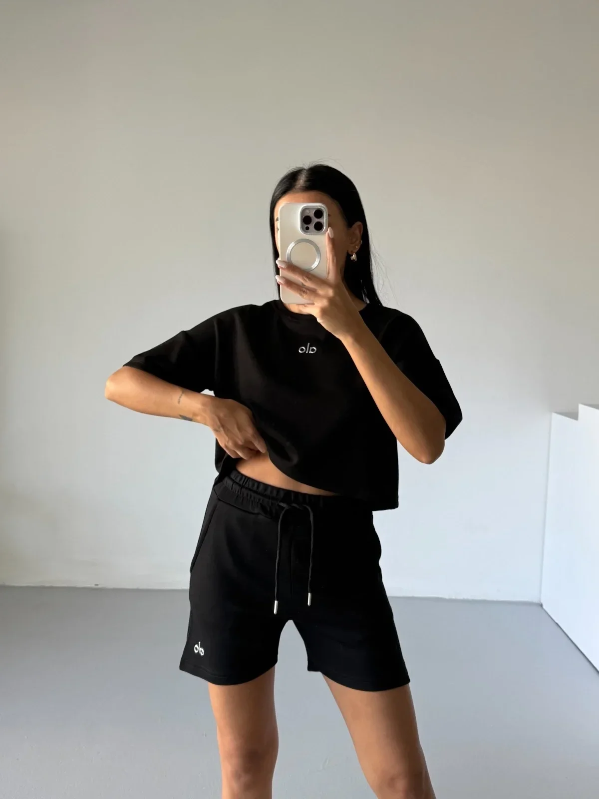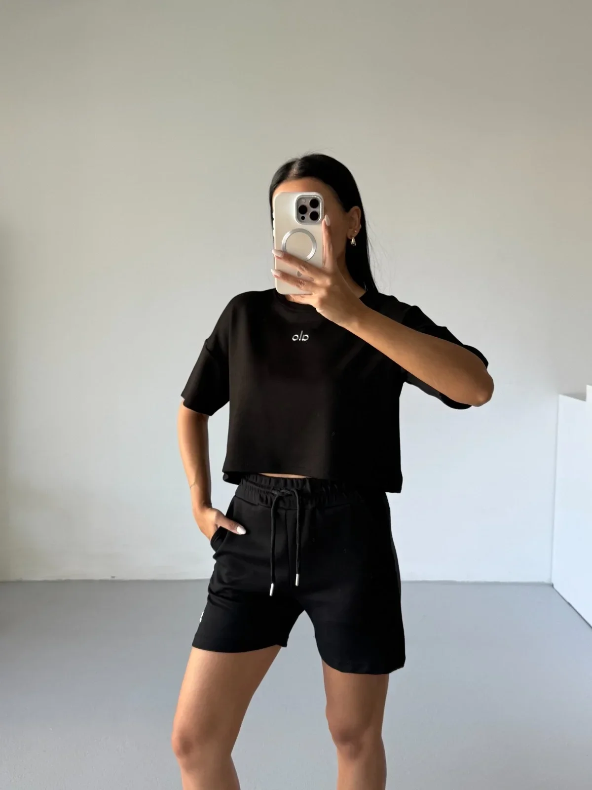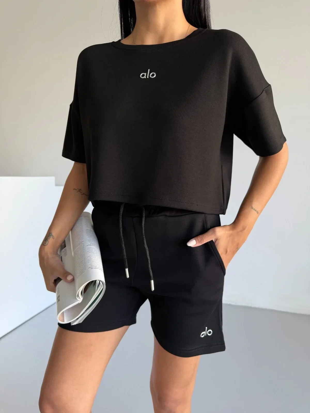 Siyah Alo Yoga Modal Crop Şortlu Takım