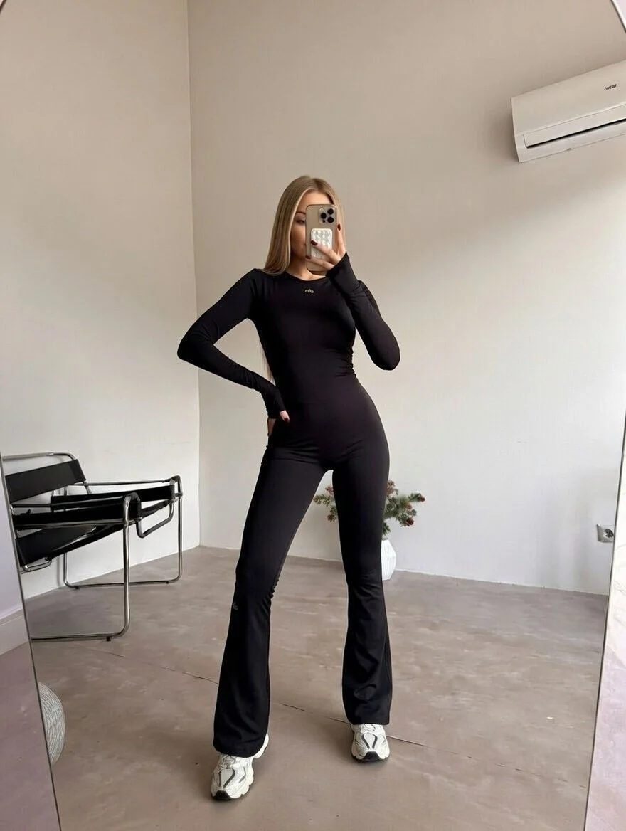 Siyah Alo Yoga Yüksel Bel İçi Şardonlu İspanyol Tayt