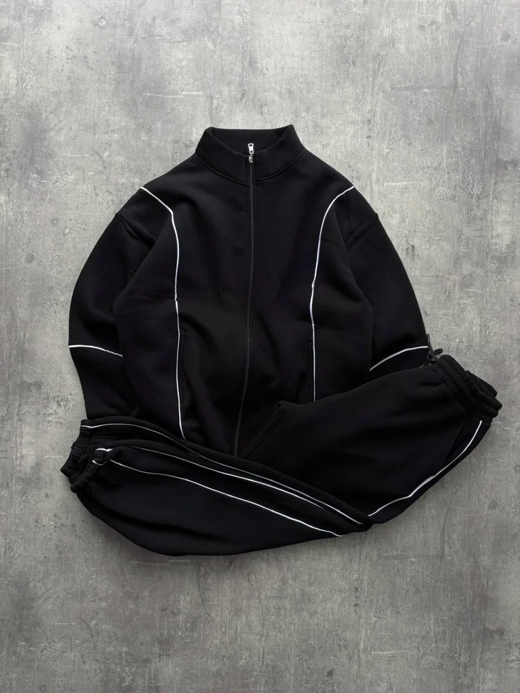 Siyah Basic Biyeli Oversize Eşofman Takımı
