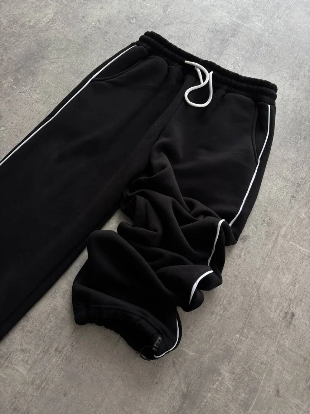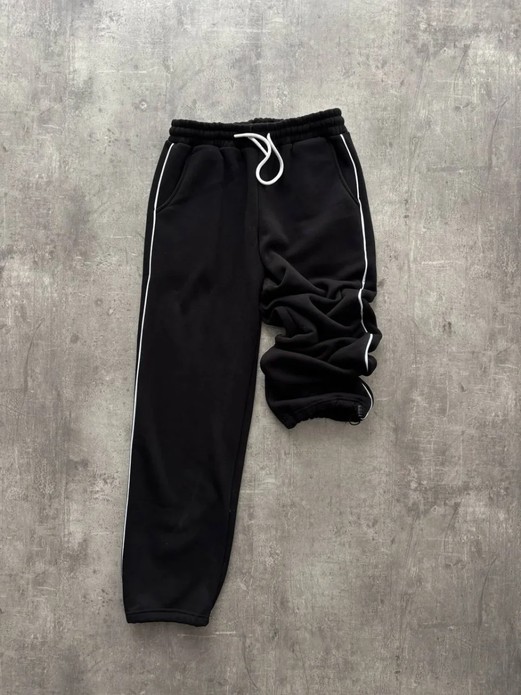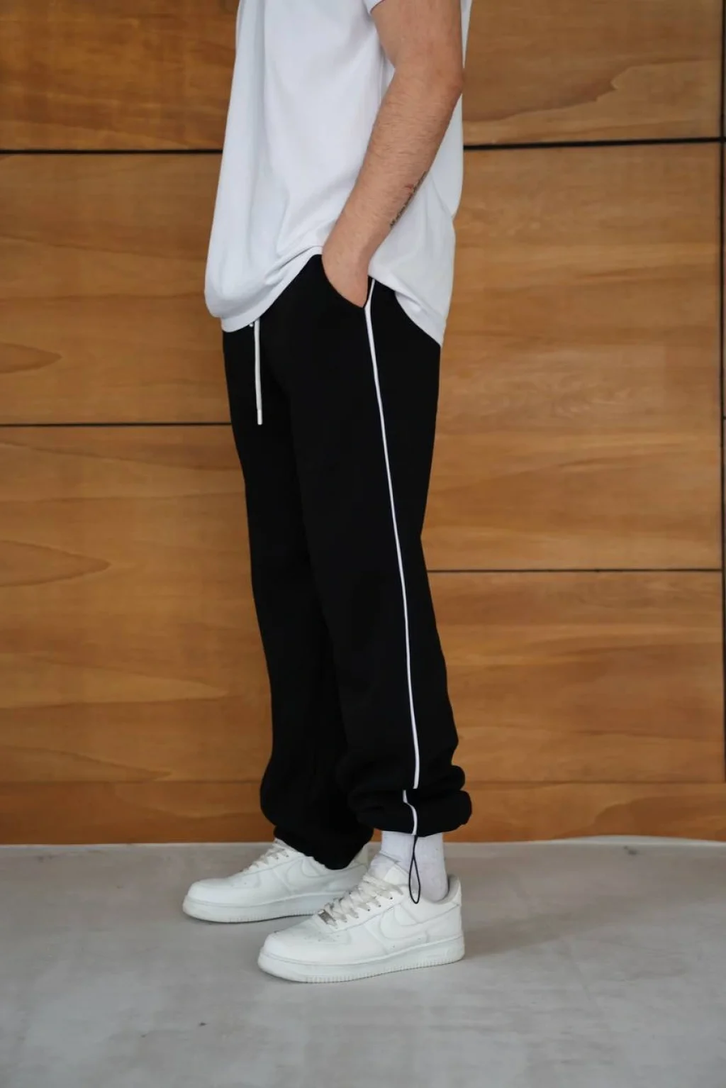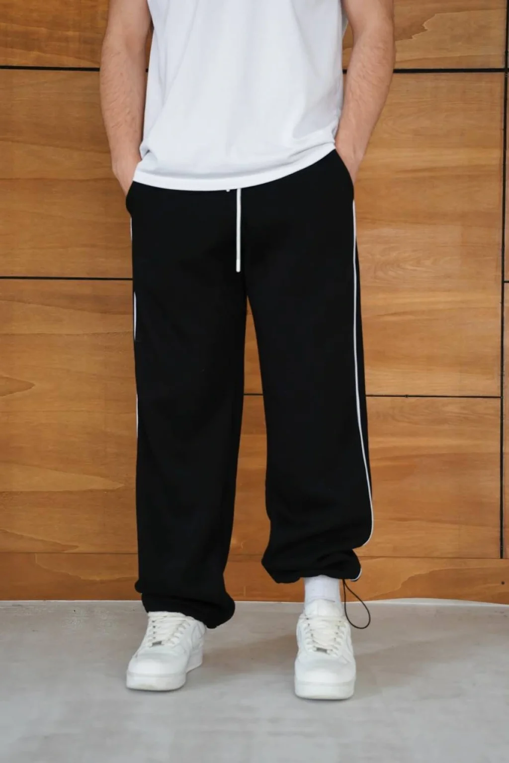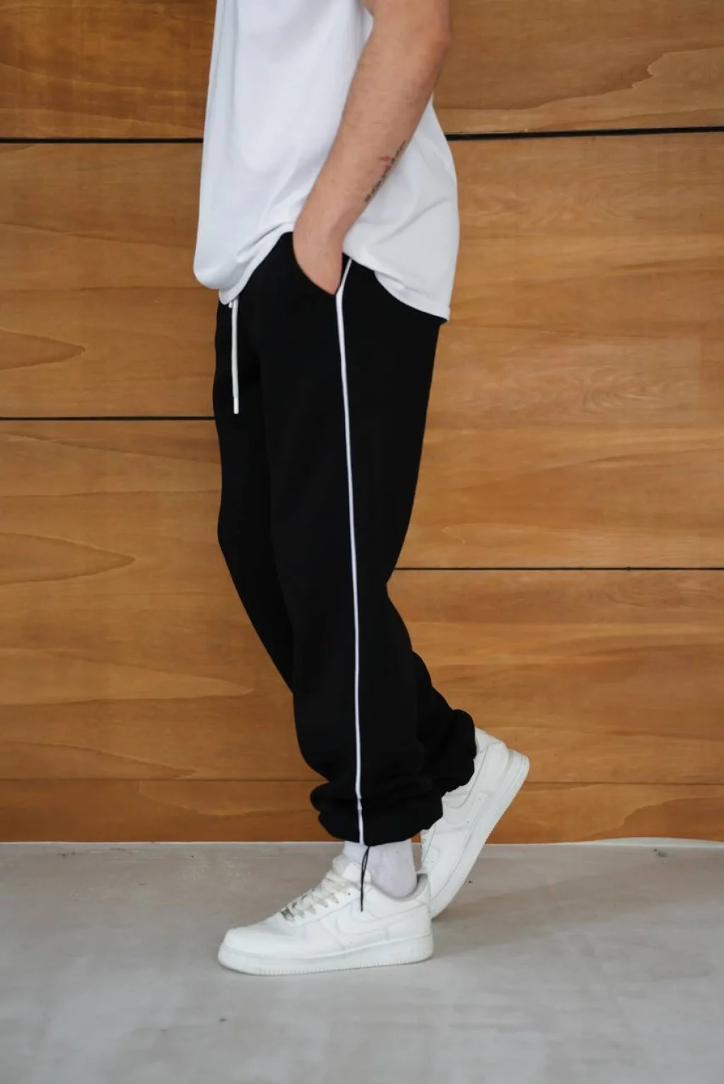 Siyah Çapraz Çift Şerit Oversize Eşofman