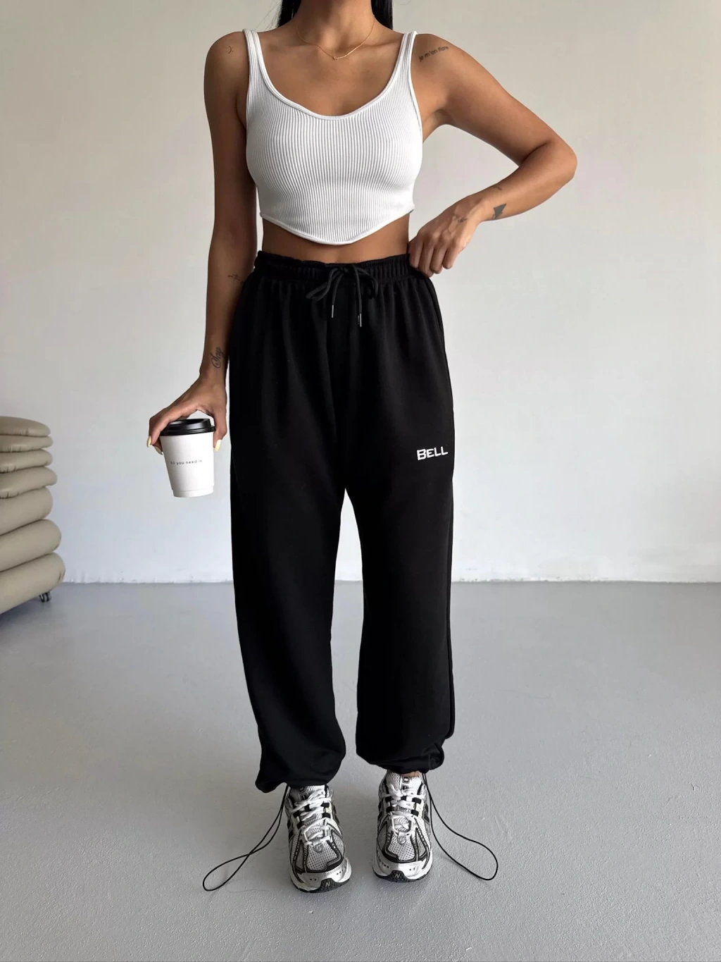 Modaskop Siyah Bell Stoperli Oversize Unisex Eşofman - ALT GİYİM > Eşofman Alt.