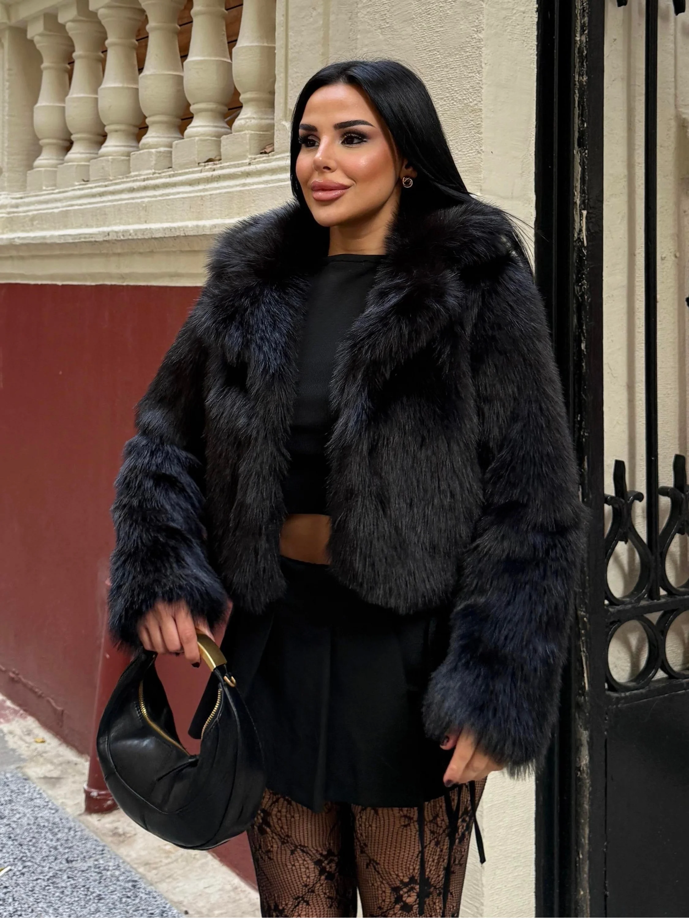 • Siyah Ceket Yaka Kısa İthal Kürk