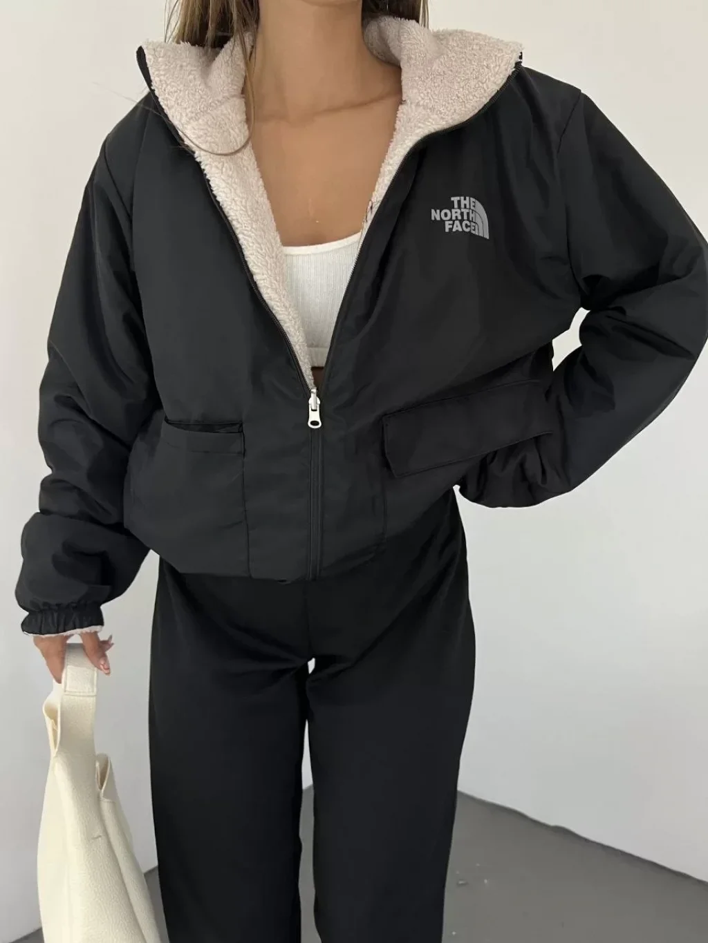 Siyah Çift Taraflı Giyilebilir Kürklü Mont