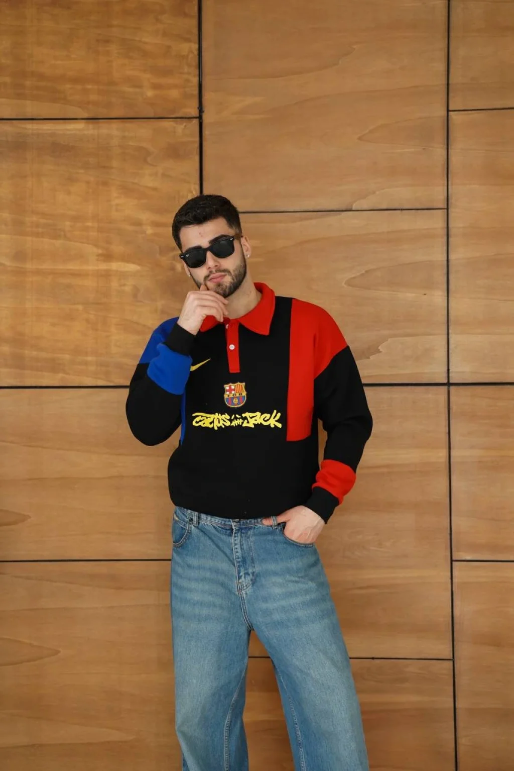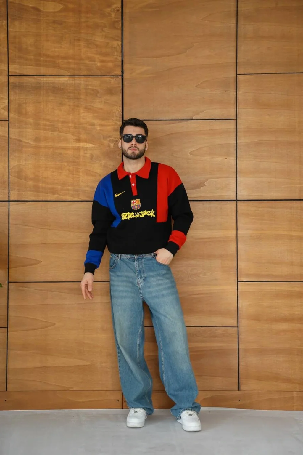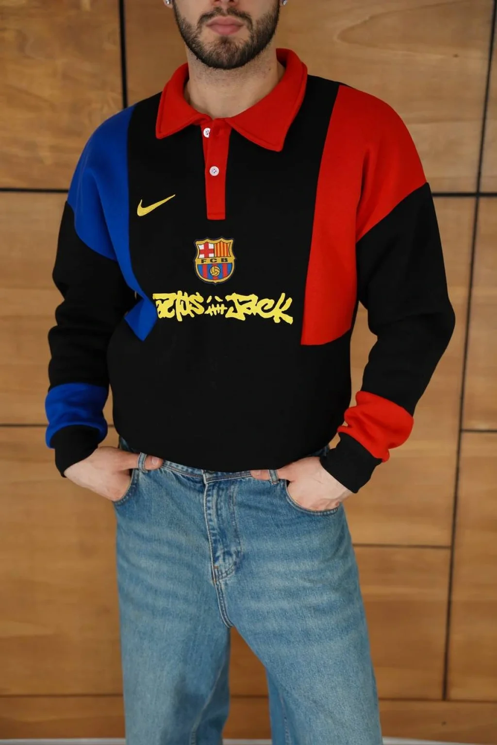 Siyah FCB Polo Yaka Unisex Oversize Sweat