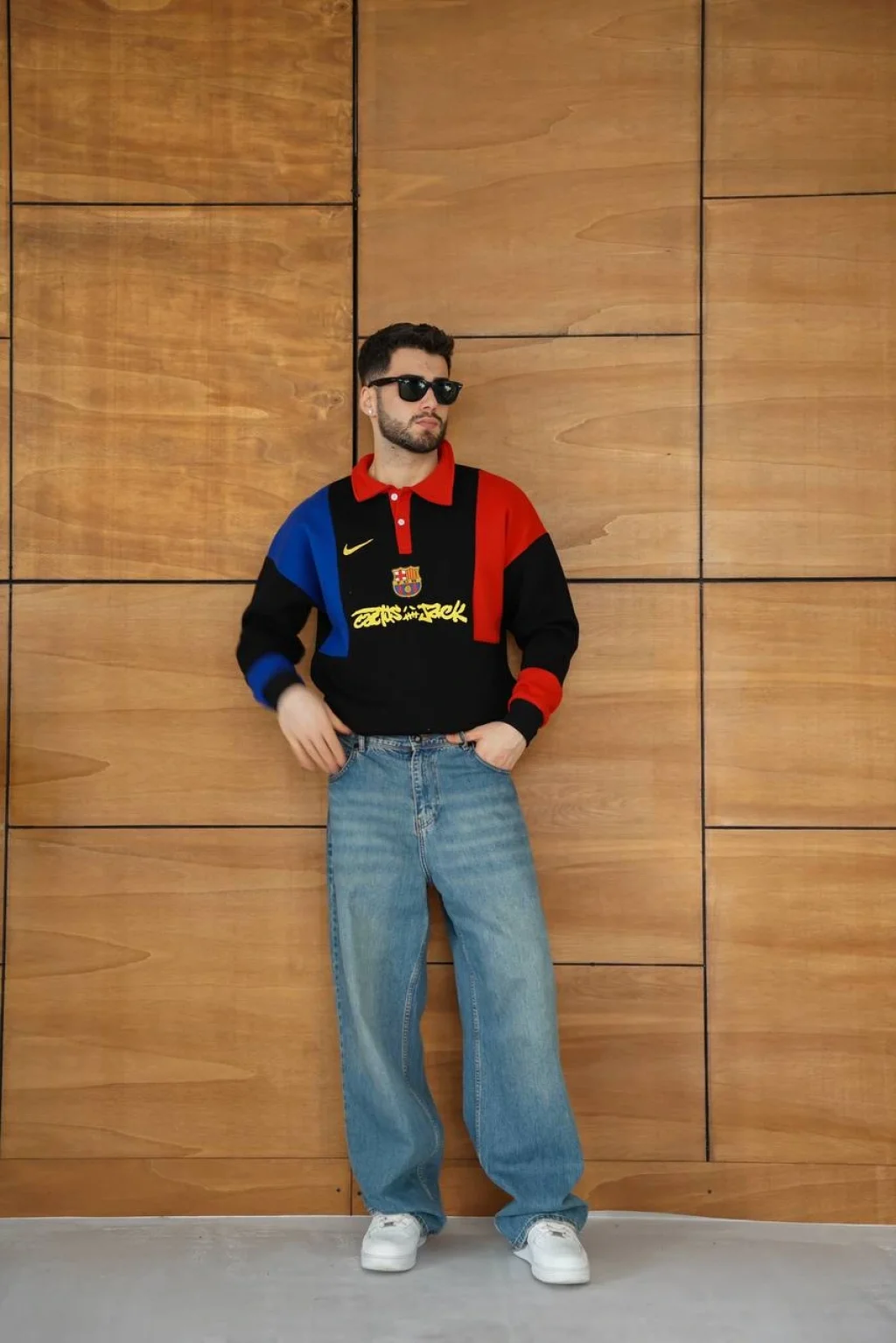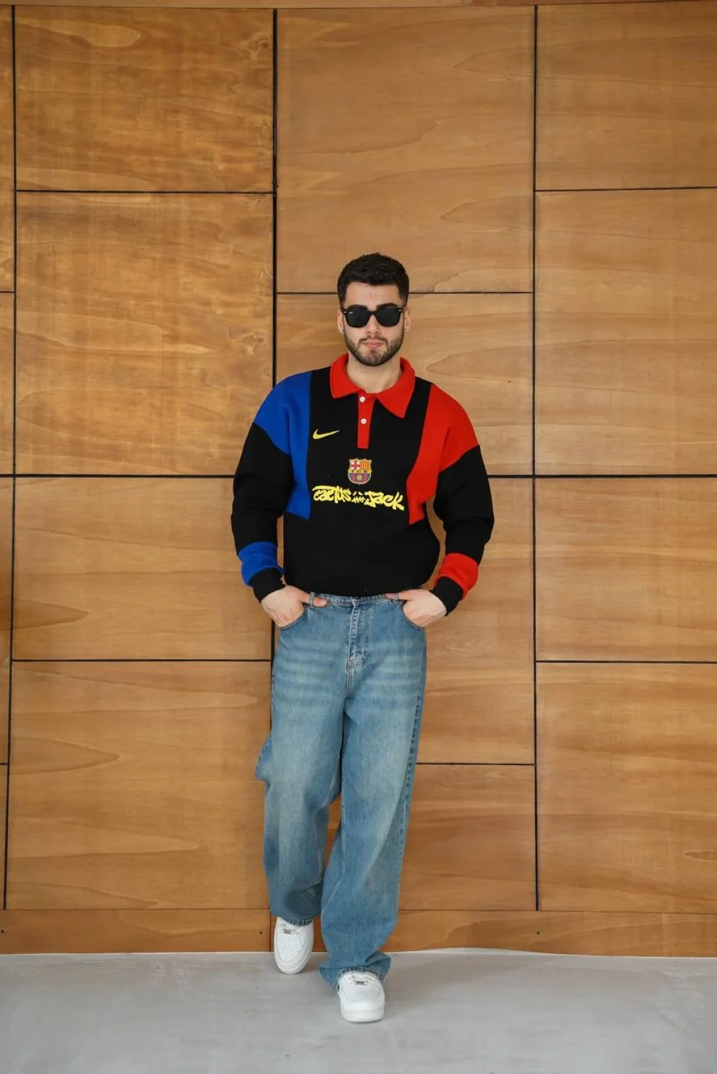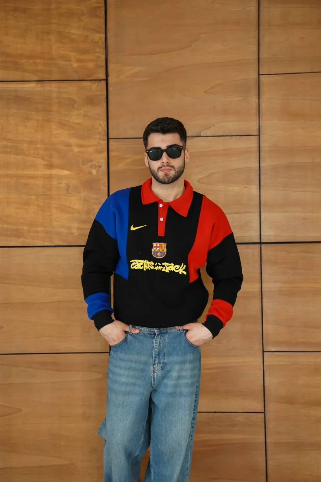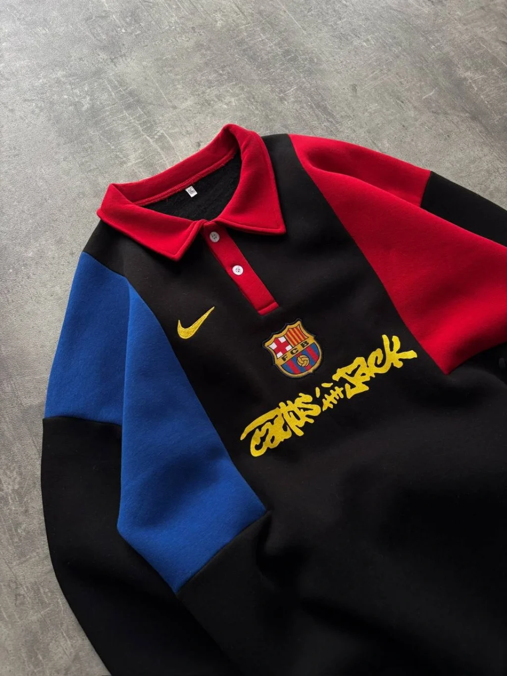 Siyah FCB Polo Yaka Unisex Oversize Sweat